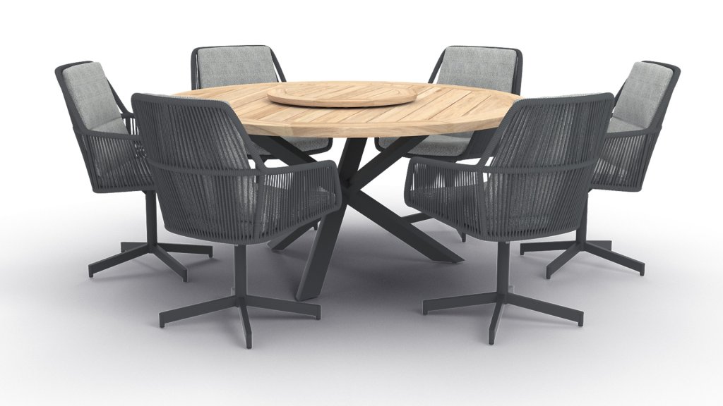 1 x Taste Prado tafel Ø160cm Teak-Alu Antraciet