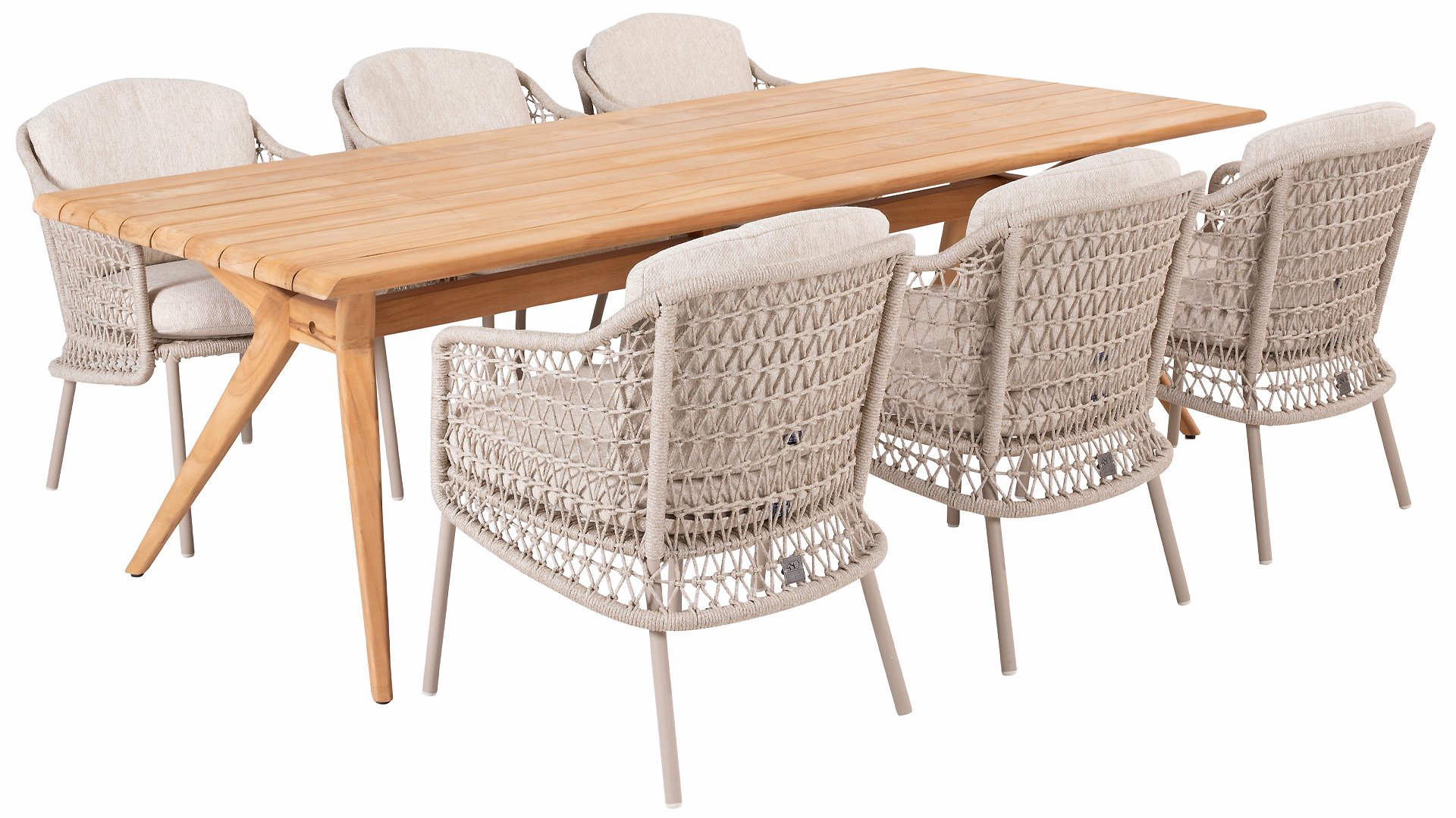Een waar meesterwerk componeren. Er is creativiteit nodig om iets compleet nieuws te brengen. En dat is precies wat 4 Seasons Outdoor heeft gedaan: de nieuwe latte-kleur van 4SO Puccini speelt de solo in zowel frame, kussens als in het verrassende rope patroon.