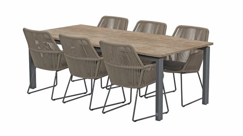 De 4 Seasons Ramblas is ontworpen met oog voor detail. Antraciete kussens die de natuurlijke bruine kleur van de ramblas mooi laat uitblinken. Vloeiende geweven rope zorgt voor een uitnodigende zitting die vast zit op een stabiel antraciet frame. Door de veerkracht van het Rope materiaal en de dikke kussens ontstaat een subliem zit-comfort. De kussens hebben een Olefin hoes welke af te ritsen is en uit te wassen op 30 graden. Deze stof is zeer weerbestendig en duurzaam. Dineer in stijl met Ramblas!