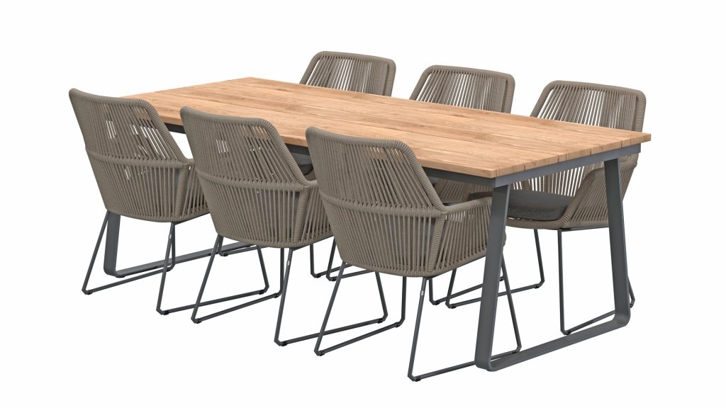 1 x 4 Seasons Outdoor Konos tafel 220x95cm Alu Antraciet-Goa Teak