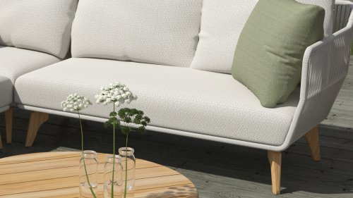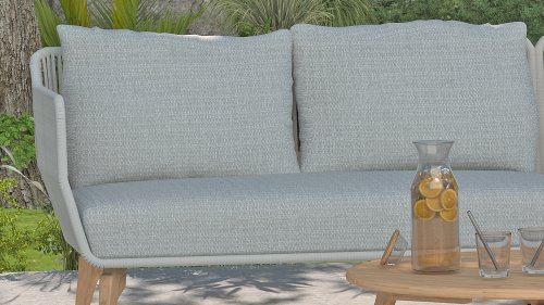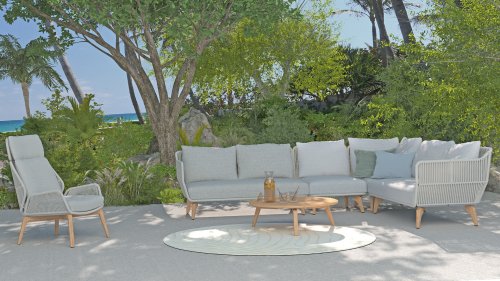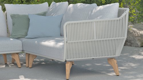 De Raphael loungeserie van 4 Seasons Outdoor is met zijn unieke uitstraling een zeer elegante verschijning op je terras. Door het combineren van touw (Rope) en teak materialen kan een warme en luxe uitstraling worden gecreëerd. Raphael's sterke en duurzame Rope heeft een lichte kleur met grijstinten. Deze kleur past perfect bij de natuurlijke uitstraling van warm teak dat aan de basis is toegevoegd. Het all-weather kussen maakt het nog perfecter en zorgt voor het beste rijcomfort.