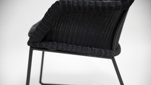 Het onderstel is verkrijgbaar in fragiel gevormd maar oersterk, in antraciet kleur gepoedercoat RVS. Het RVS. onderstel gecombineerd met de prachtige Charcoal of Antraciet kleurige vlechtwerkdraad geeft een moderne maar toch "warme"uitstraling. De ronde vormen houden dit moderne design helemaal in balans.