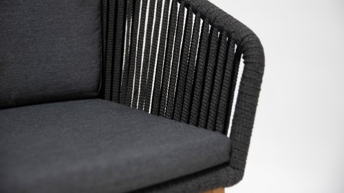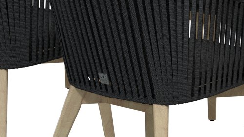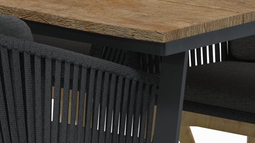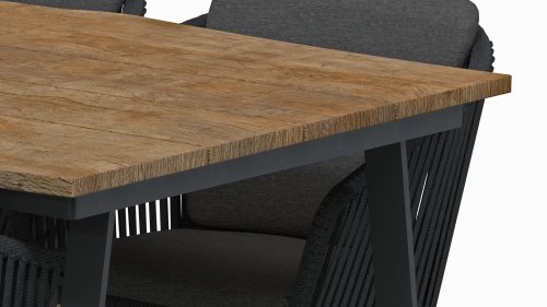 Het aluminium frame garandeert een lange zorgeloze levensduur. Het rustieke onderstel van Teak hout heeft een behandeling gehad met 4SO Instant Grey voor de zachte white-wash look. De afwerking met robuuste teakhouten poten in combinatie met de mid grey gekleurde rope draad en de antraciet gekleurde zit-en rugkussens zorgen voor een harmonieuze landelijke sfeer die perfect in iedere tuin tot zijn recht komt. In de Santander dining chair is het comfortabel én stylish verantwoord natafelen!