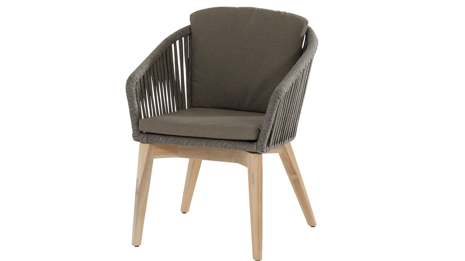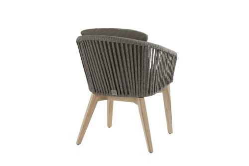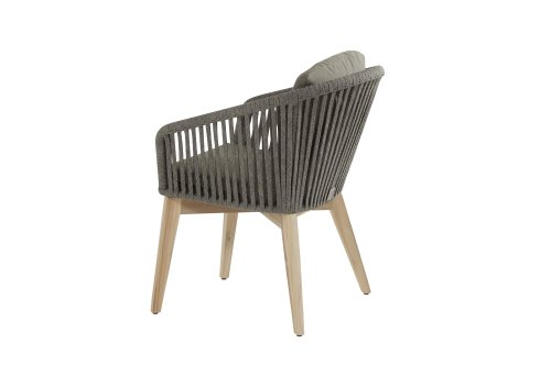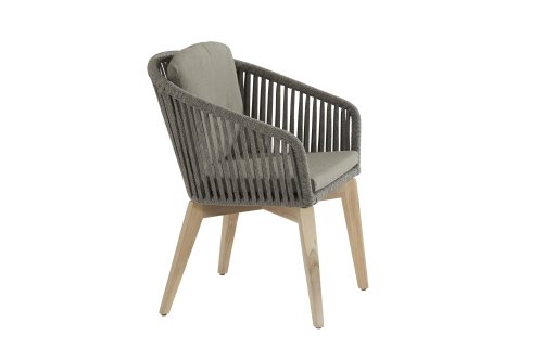 De 4Seasons Santander, modern met een landelijke uitstraling. Verkrijgbaar in Antraciet en Mid grey. De Santander wordt geleverd met teakhouten poten wat er voor zorgt dat het goed te combineren valt met teak tafels. Het draad is kunststof draad dat strak is omgevlochten door de vakmensen van 4SO. Het bevat een kern wat het stevig maakt én kleurvast. Dineer in de Santander serie.