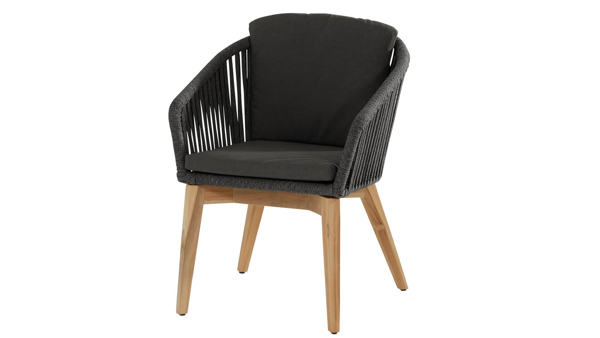 De 4Seasons Santander, modern met een landelijke uitstraling. Verkrijgbaar in Antraciet en Mid grey. De Santander wordt geleverd met teakhouten poten wat er voor zorgt dat het goed te combineren valt met teak tafels. Het draad is kunststof draad dat strak is omgevlochten door de vakmensen van 4SO. Het bevat een kern wat het stevig maakt én kleurvast. Dineer in de Santander serie.