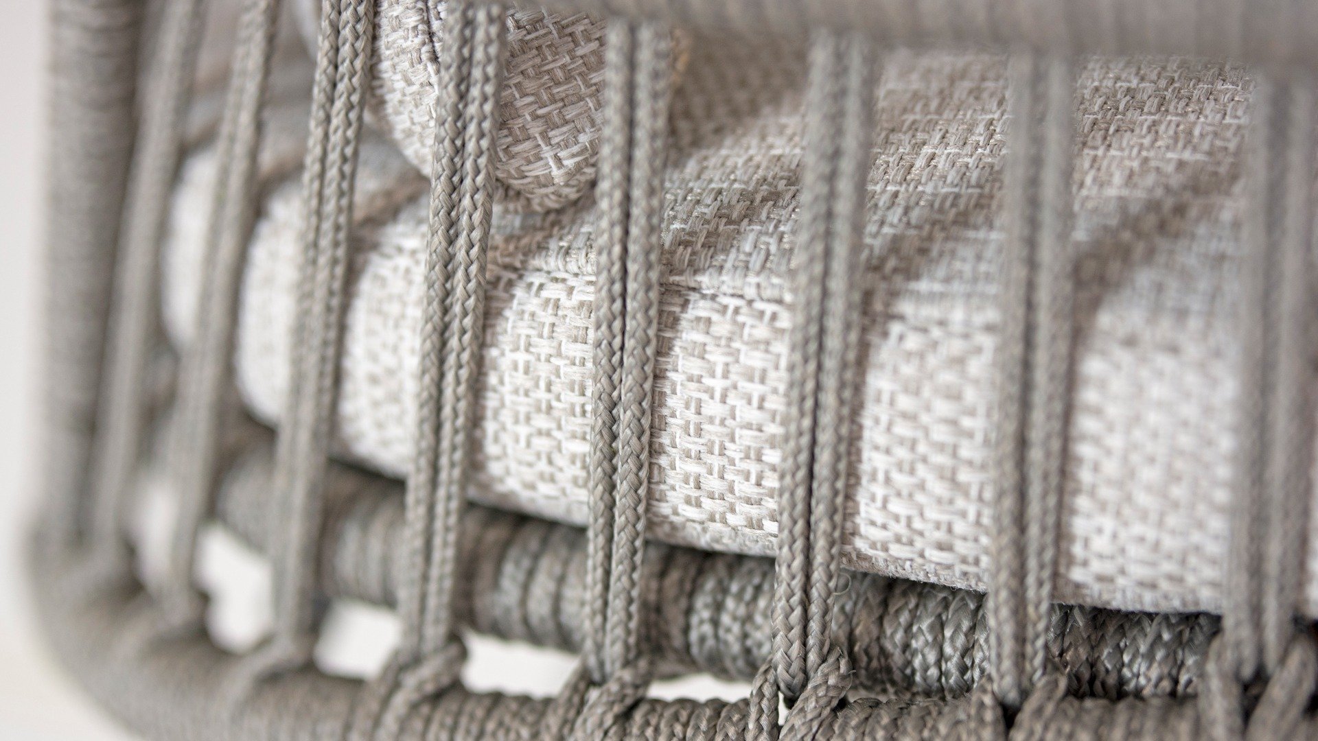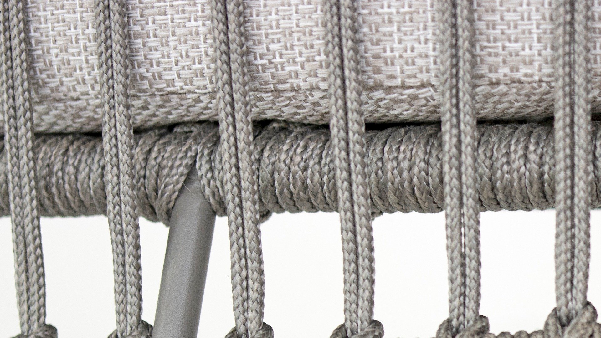 Dit prachtige materiaal is perfect voor buitengebruik, want 4SO Rope is niet zo maar een gewone veter waar u uw schoenen mee strikt. 4Seasons gebruikt zeer hoge kwalitiets Rope gemaakt van 100% SDP ( Slution Died Polypropylene). Dit materiaal is extreem sterk en heeft een zeer klein rekbaarheids percentage. Polyproylene is op olie basis waardoor vuil en verontreiniging nauwelijks in kan dringen, net als onze kussens. 4Seasons biedt exclusieve designs, waarbij hand geweven Rope patronen en technieken worden gebruikt.