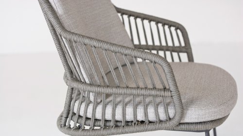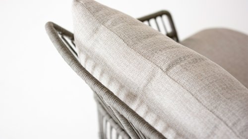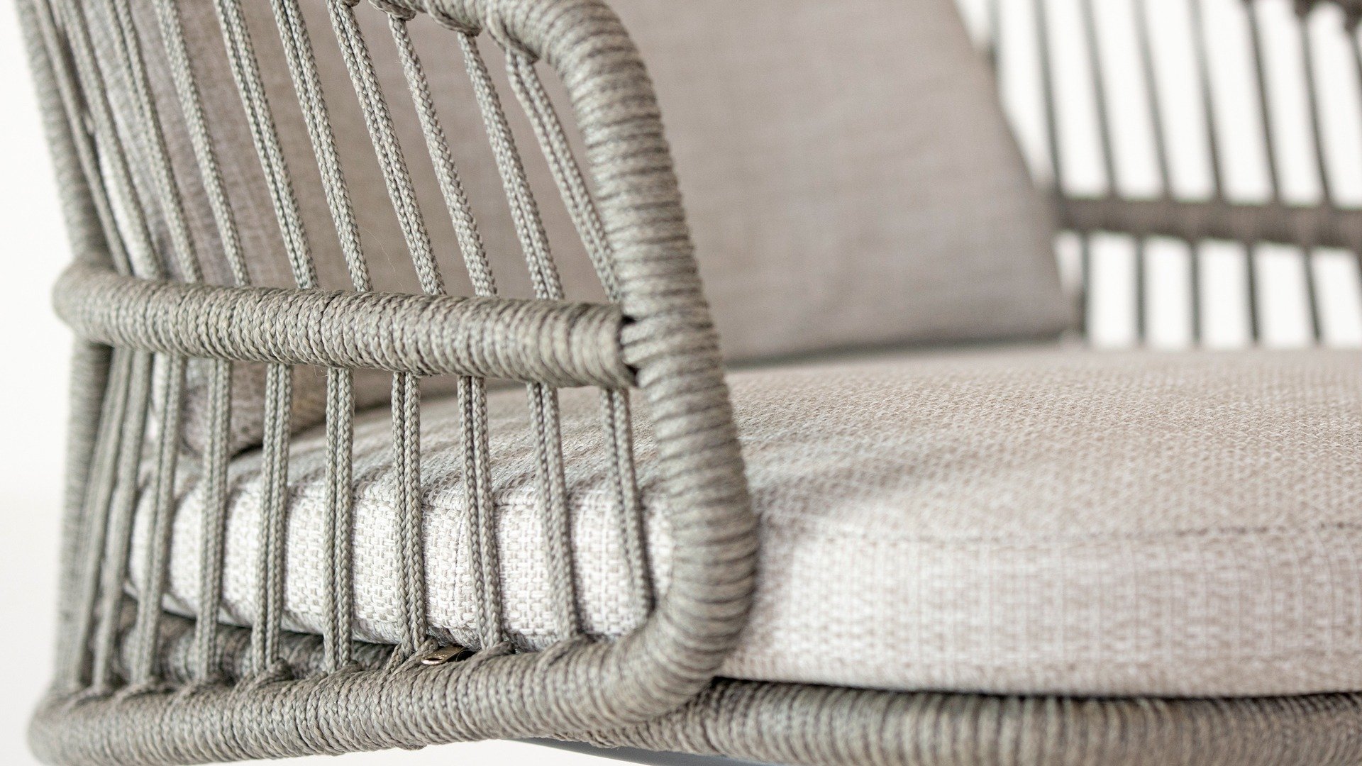 Het 4Seasons Sempre frame is omvlochten is silver grey synthetische wicker in de vorm van touw (Rope). De kussens zijn uitgevoerd in een prachtige grijs kleurige Olefin stof. Door de veerkracht van het Rope materiaal en de heerlijke zit-en rugkussens ontstaat een subliem zit-comfort! De kussens hebben een Olefin hoes welke af te ritsen is en uit te wassen op 30 graden. Deze stof is zeer weerbestendig en duurzaam.