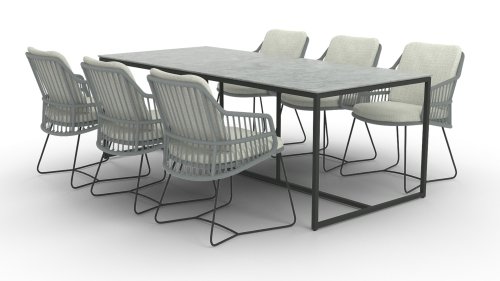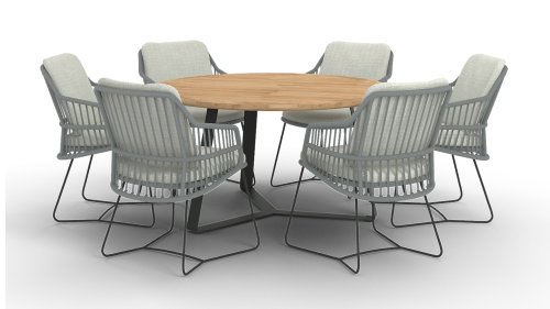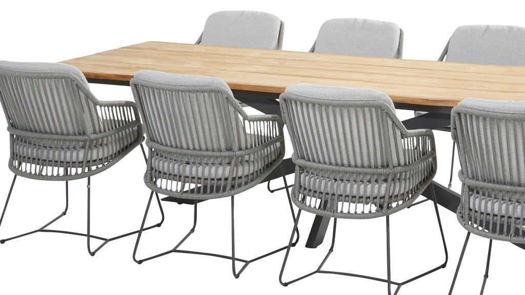 De 4Seasons Sempre tuinset heeft een moderne maar toch rustieke uitstraling met een natural touch die zo kenmerkend is voor het Design. De schoonheid zit hem in de details. Het frame van de 4Seasons Sempre diningstoel loopt strak en vloeiend in elkaar over en is afgewerkt met het strak omvlochten Rope. Rug en zitting zijn gevlochten met dit sterke Rope en geeft een stevige maar comfortabele zit. Het frame vormt een speels en minimalistisch samenspel van vloeiende lijnen die samenkomen en weer uit elkaar gaan. De zijkanten en achterkant is met kunstig kruislings gevlochten Rope afgewerkt waardoor een speels geknoopt ruitenpatroon ontstaat... Kortom een lust voor het oog!
