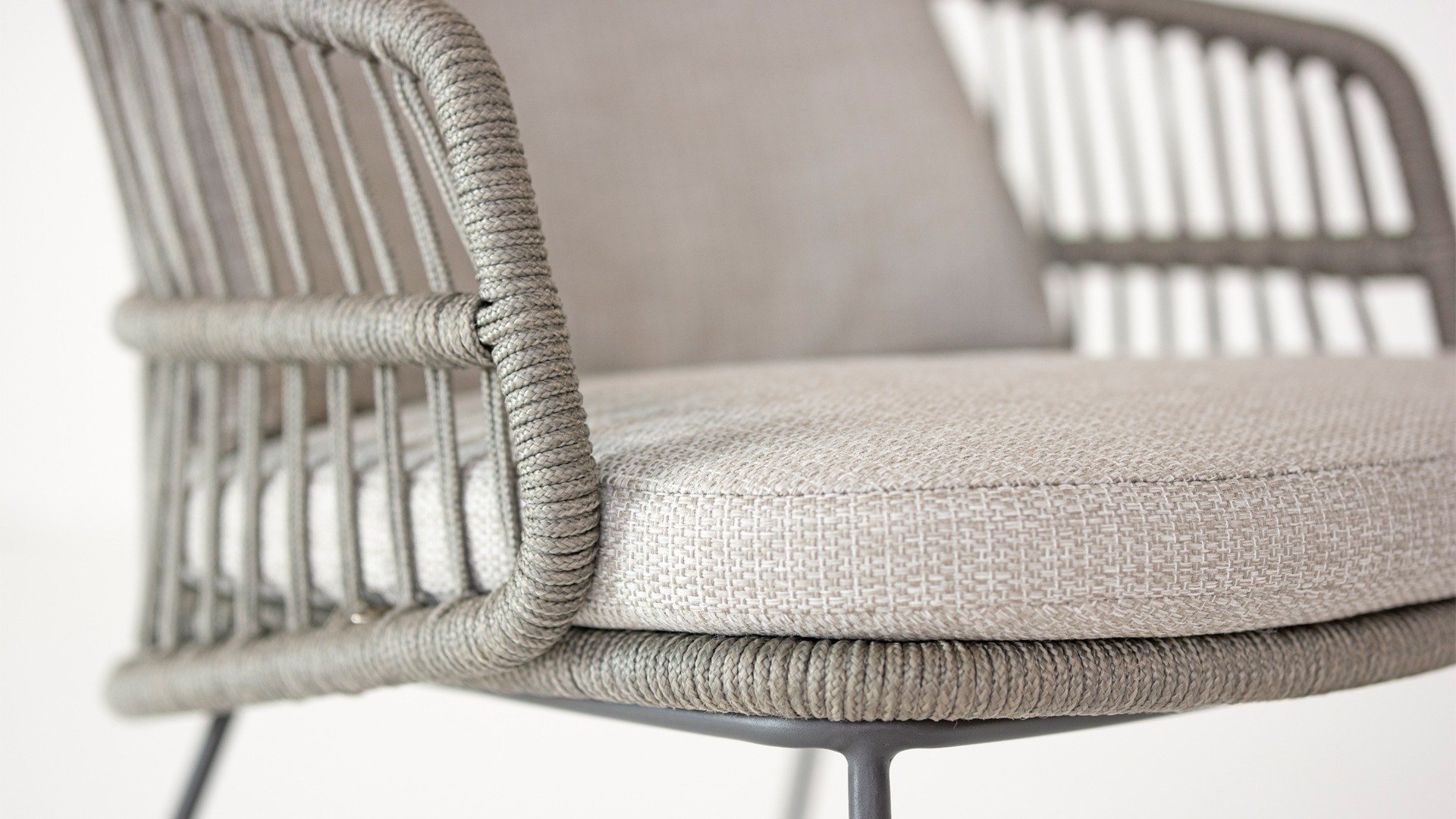 Dit prachtige materiaal is perfect voor buitengebruik, want 4SO Rope is niet zo maar een gewone veter waar u uw schoenen mee strikt. 4Seasons gebruikt zeer hoge kwalitiets Rope gemaakt van 100% SDP ( Slution Died Polypropylene). Dit materiaal is extreem sterk en heeft een zeer klein rekbaarheids percentage. Polyproylene is op olie basis waardoor vuil en verontreiniging nauwelijks in kan dringen, net als onze kussens. 4Seasons biedt exclusieve designs, waarbij hand geweven Rope patronen en technieken worden gebruikt.