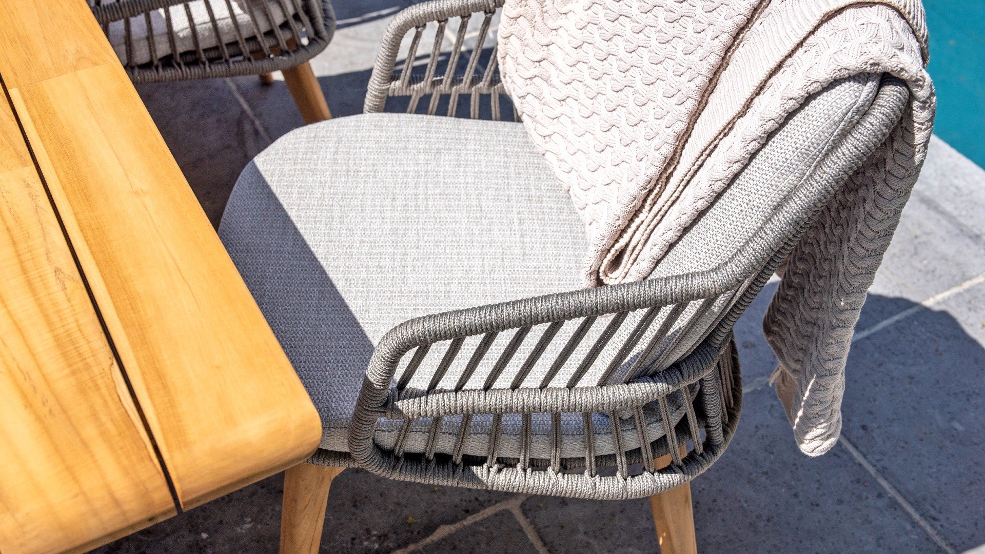 Dit prachtige materiaal is perfect voor buitengebruik, want 4SO Rope is niet zo maar een gewone veter waar u uw schoenen mee strikt. 4Seasons gebruikt zeer hoge kwalitiets Rope gemaakt van 100% SDP ( Slution Died Polypropylene). Dit materiaal is extreem sterk en heeft een zeer klein rekbaarheids percentage. Polyproylene is op olie basis waardoor vuil en verontreiniging nauwelijks in kan dringen, net als onze kussens. 4Seasons biedt exclusieve designs, waarbij hand geweven Rope patronen en technieken worden gebruikt.