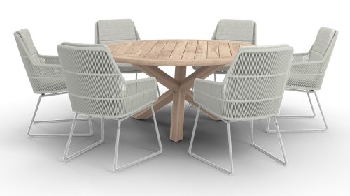 Valencia komt van het merk 4 Seasons Outdoor. Het frame is gemaakt van gepoedercoat roestvrij staal. De stoel is voorzien van all weather touwen. Het touw kan altijd buiten blijven staan zonder stof aan te trekken. Staat het kussen niet op de stoel, dan ziet de stoel er prachtig uit. Het zitkussen is licht grijs. Er is olefinestof gebruikt. Dit is een niet-vervagende stof. Deze stof is ook weerbestendig. De 4-seizoenen outdoor eetkamerstoel Valencia is een mooi gevormde stoel. De ronde vorm en het zachte kussen maken het tot een comfortabele stoel. Dit nieuwe product in de 4 Seasons Outdoor-serie is verkrijgbaar in twee kleuren: platinagrijs en Frost Grey. De Valencia tuinstoel zorgt voor een uitstekende ondersteuning van de rugleuning van de stoel, en is perfect te combineren met verschillende eettafels! Het merk 4 Seasons Outdoor produceert producten van de hoogste kwaliteit.