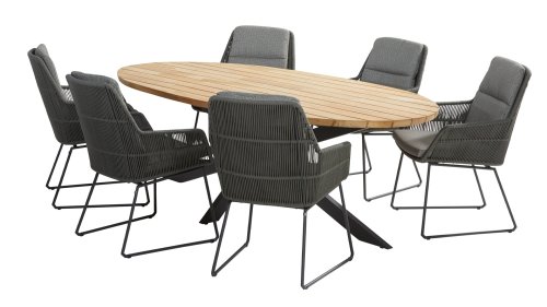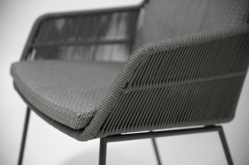 Valencia komt van het merk 4 Seasons Outdoor. Het frame is gemaakt van gepoedercoat roestvrij staal. De stoel is voorzien van all weather touwen. Het touw kan altijd buiten blijven staan zonder stof aan te trekken. Staat het kussen niet op de stoel, dan ziet de stoel er prachtig uit. Het zitkussen is jute grijs grijs. Er is olefinestof gebruikt. Dit is een niet-vervagende stof. Deze stof is ook weerbestendig. De 4-seizoenen outdoor eetkamerstoel Valencia is een mooi gevormde stoel. De ronde vorm en het zachte kussen maken het tot een comfortabele stoel. Dit nieuwe product in de 4 Seasons Outdoor-serie is verkrijgbaar in twee kleuren: platinagrijs en bevroren grijs. De Valencia eetkamerstoel zorgt voor een uitstekende ondersteuning van de rugleuning van de stoel, en is perfect te combineren met verschillende eettafels! Het merk 4 Seasons Outdoor produceert producten van de hoogste kwaliteit.