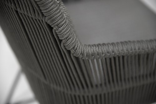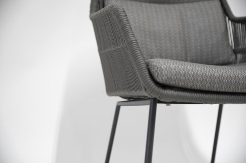 Zachte rondingen en vloeiende lijnen maken de 4 Seasons Valencia dining stoelen geliefd bij elke design fanaat. Het prachtige Rope in Platinum of Frozen valt echt op. Geniet van de Valencia en combineer deze buitengewone stoelen met een tafel naar wens. Het kussen is gemaakt van stof olefin. Olefins zijn stoffen die bestand zijn tegen ultraviolette straling en temperatuurverschillen en zijn sneldrogende stoffen. De rug kantelt iets naar achter wat zorgt voor een comfortabele zit, en dat samen met de armleuningen zorgt voor uren lang genieten in de Valencia serie!