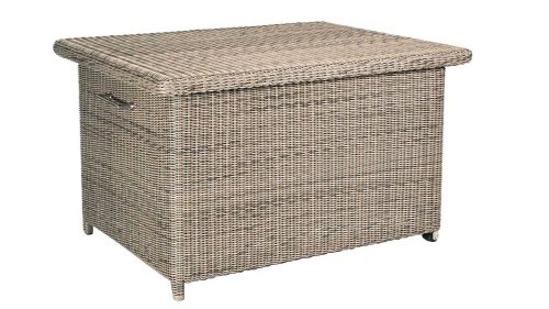 De 4Seasons Wales opbergbox is een XL formaat, ideaal voor het opbergen van uw lounge kussens. Aan het deksel zitten 2 gasveren bevestigd die het openen en sluiten gemakkelijk maken. De kussenbox is verrijdbaar. Met het RVS handvat rijdt u de box zo van zijn plaats. De 4SO Wales opbergbox is weerbestendig en kunt u het gehele jaar door buiten laten, natuurlijk inclusief kussens. De vlecht draad in Pure kleur maakt de box perfect te combineren bij iedere lounge set in de Pure kleur.