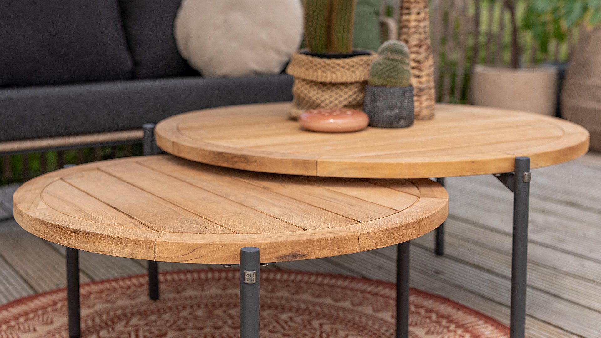 1 x 4Seasons Yoga salontafel Antraciet Teak/Alu Ø 90cm