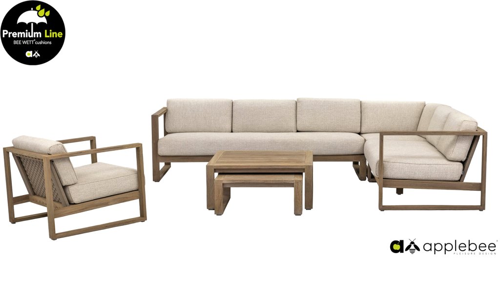 Het ontwerp van de Applebee Antigua is vooral gebaseerd op hoekige, kubistische vormen wat deze loungeset zo’n mooi strak karakter geeft. Zowel de stoelen als de tafel zijn gemaakt van teakhout met een coastal finish, waardoor het een lichte uitstraling heeft. De zit- en rugleuning van de Loungeset bestaat uit vlechtwerk van ‘belt en rope’ in de kleur taupe.