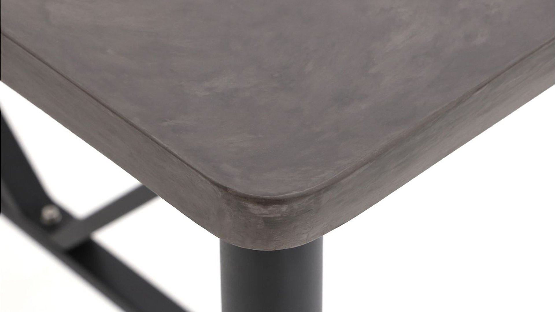 De Bijou bar tafel met LWC (Light Weigt Concrete) behoort tot de Bijou barset-serie. Deze bartafel is een prachtige Alluminium tafel met een LWC top in lava. Het verfijnde ontwerp van deze tafel heeft een aluminium frame dat subtiel doorloopt naar het tafelblad.