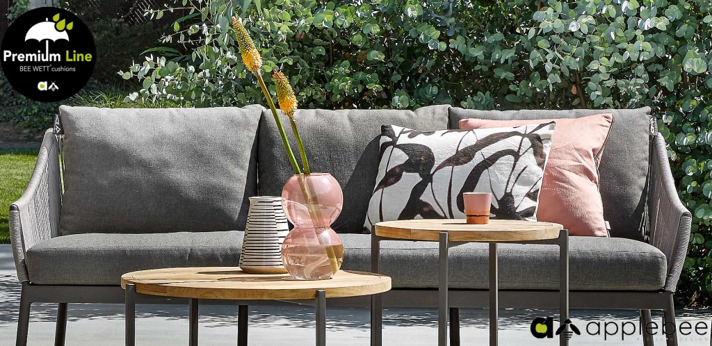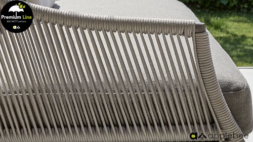 Door het vriendelijke formaat is Applebee Bijou Taupe ook geschikt voor een balkon of kleiner terras. Met Bijou is er weer een typisch origineel Apple Bee designmeubel in de collectie bijgekomen! Bij de premium line zijn de kussens voorzien van Bee Wett® technologie, wat ervoor zorgt dat de kussens weer snel droog zijn na een fikse regenbui. U kunt de kussens dus gewoon buiten laten liggen. De drainage aan de onderzijde van het kussen zorgt er namelijk voor dat het water de kussens eenvoudig kan verlaten. In het royale formaat kunt u verdwijnen in luxe en comfort. De Apple bee Bijou loungeset Taupe is daarmee uitermate geschikt om écht te loungen. Het Ropedraad vergt een bijzondere vlechttechniek, die alleen de beste vlechters beheersen. Deze ambachtslieden vlechten iedere draad één voor één handmatig in. Je haalt met AppleBee Bijou Loungeset Taupe dus een echt staaltje ambachtskunst in huis.