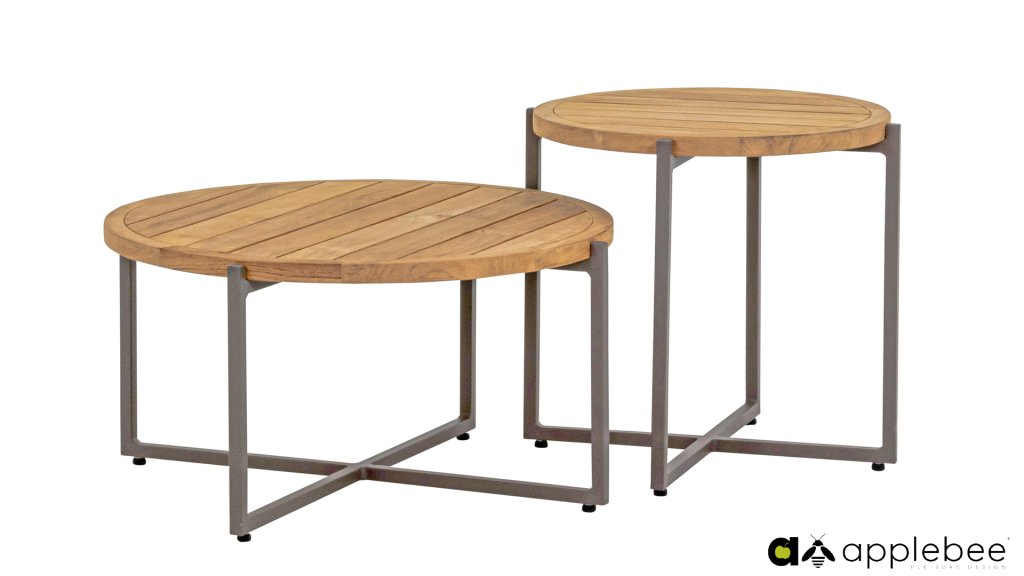 1 x Applebee Bijou salontafel Teak/Alu ± 74x38cm (ØxH)