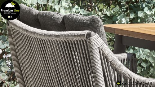 De meisjesnaam Bijou betekent zacht en vriendelijk. Dit gaat zeker op voor de nieuwe parel in de Apple Bee collectie. Het rope van de AppleBee Bijou heeft de uitstraling van wilgenteen. Natuurgetrouw om te zien, maar in de bekende stevige Biculair® buitenkwaliteit die u van Apple Bee gewend bent. Dit rope wordt omlijst door een taupe gepoedercoat frame met gebogen lijnen, waaraan tuinset Bijou haar chique, moderne look ontleent.