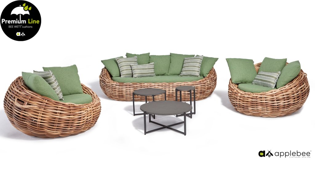 De Cocoon van Applebee is geïnspireerd op de veilige, geborgen cocon, waarin een rups transformeert naar een prachtige vlinder. Fraaie groene loungekussens -naar keuze met Bee Wett® technologie- in combinatie met het uitzonderlijk dik gevlochten Biculair® vlechtdraad van maar liefst 20 mm!