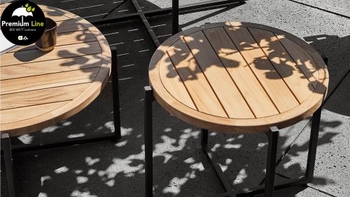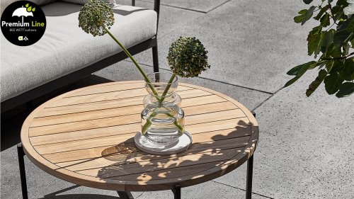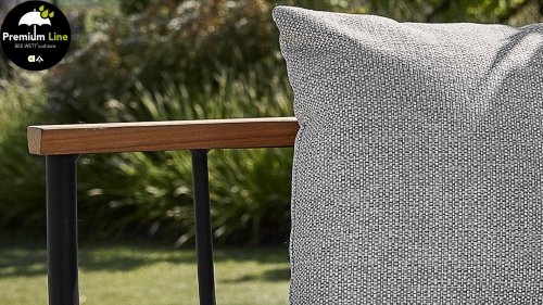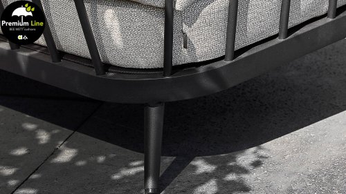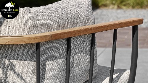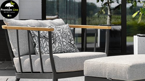 De Applebee Condor Loungeset heeft een strakke, stoere look. Dit is doorgevoerd in zowel de loungestoel en de 2 en 3-zits Loungebanken. Het basismateriaal van de set is matzwart gepoedercoat aluminium, wat is toegepast in robuuste afmetingen. De BEE WETT® kussens hebben een grove weefstructuur, maar dit wel met een soft touch voor het optimale comfort. Samen met de mooie rondingen in de rug en het gebruik van naturel teakhout in het tafelblad en de stoelleuningen, krijgt de Applebee Condor Lounge toch dat aangename vleugje natuurlijke warmte mee.