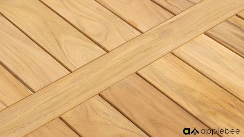 Het hout dat door AppleBee gebruikt wordt is FSC® en SVLK® gecertificeerd! Teakhouten tuinmeubelen zorgen voor een prachtige uitstraling. Bovendien is het sterk materiaal en vraagt het weinig onderhoud. Als u uw teakmeubelen buiten laat staan, krijgt het in de loop der jaren een ander uiterlijk. U kunt uw teakhouten tuinmeubelen prima onderhouden met de artikelen uit ons teak onderhoudsmiddelen programma. Daarnaast kunt u teak met groene zeep reinigen. Onregelmatigheden zijn kenmerkend voor het product. Dit soort onregelmatigheden kan daarom ook nooit aanleiding vormen voor reclamatie, garantie of claim. Het betreft een handtekening van originaliteit.