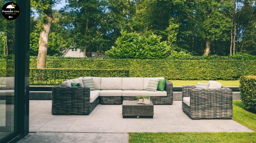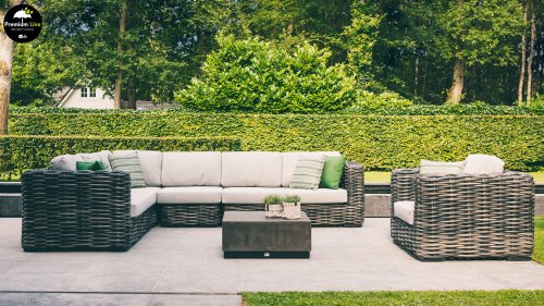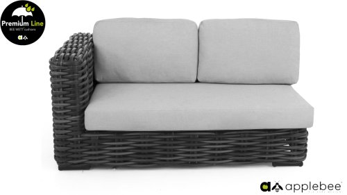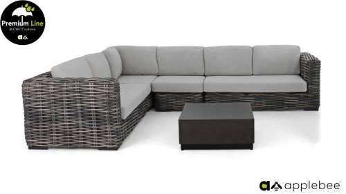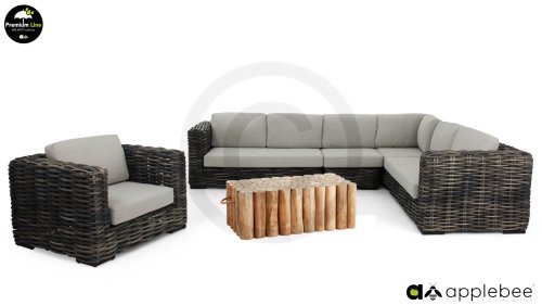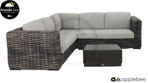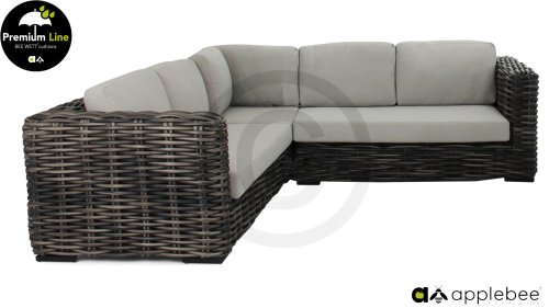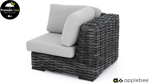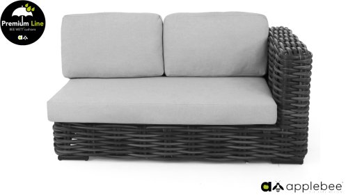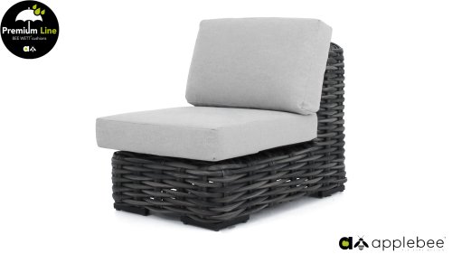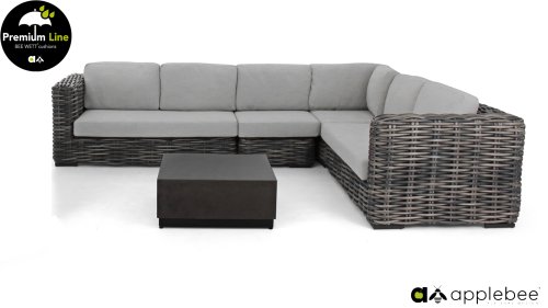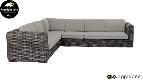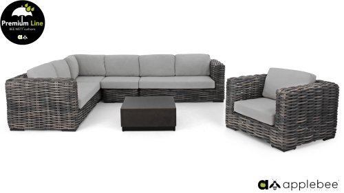 Iedereen kan zelf invulling geven aan hoe het perfecte lounge set er uit moet zien, heel veel variatie door de grote diversiteit in elementen waarmee u naar hartelust kunt combineren. Bij de premium line zijn de kussens voorzien van Bee Wett® technologie, wat ervoor zorgt dat de kussens weer snel droog zijn na een fikse regenbui. Je kunt de kussens dus gewoon buiten laten liggen. De drainage aan de onderzijde van het kussen zorgt er namelijk voor dat het water de kussens eenvoudig kan verlaten. In het royale formaat kun je verdwijnen in luxe en comfort. De Applebee Black Elements loungeset is daarmee uitermate geschikt om écht te loungen.Het extreem dikke vlechtdraad vergt een bijzondere vlechttechniek, die alleen de beste vlechters beheersen. Deze ambachtslieden vlechten iedere draad één voor één handmatig in. Je haalt met AppleBee Elements Black Loungeset dus een echt staaltje ambachtskunst in huis.