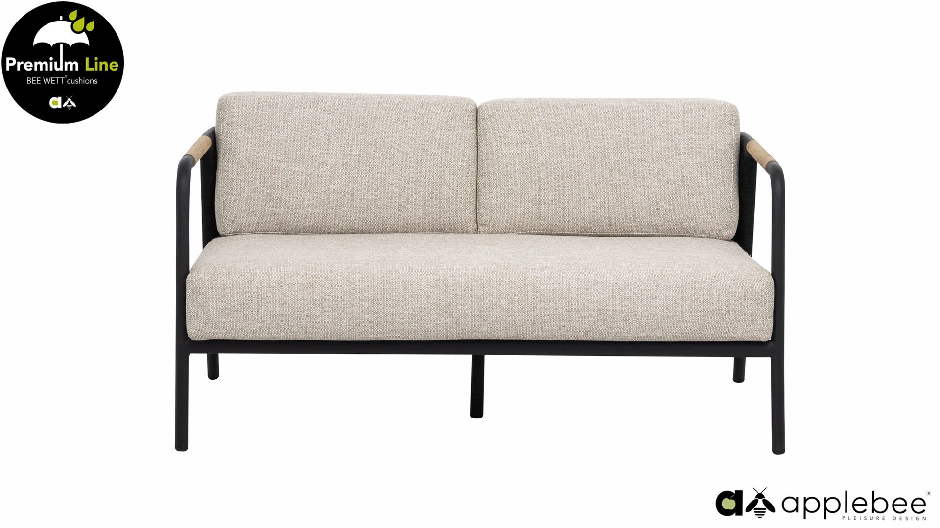 Door de slimme belijning oogt deze Applebee Elle Belt lounge set slank, terwijl ze toch een zee aan zitruimte biedt. Het ronde matzwart aluminium buisframe wordt afgewisseld met een naturel teakhouten armlegger. De rugleuning is voorzien van een solide gevlochten zwartkleurige belt, die als het ware het rug kussen op de hoeken omarmt.