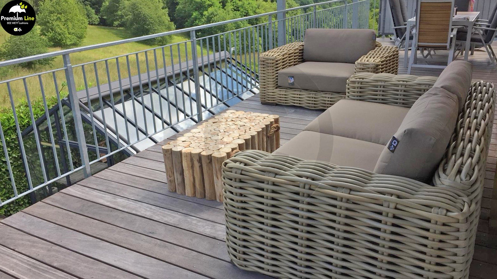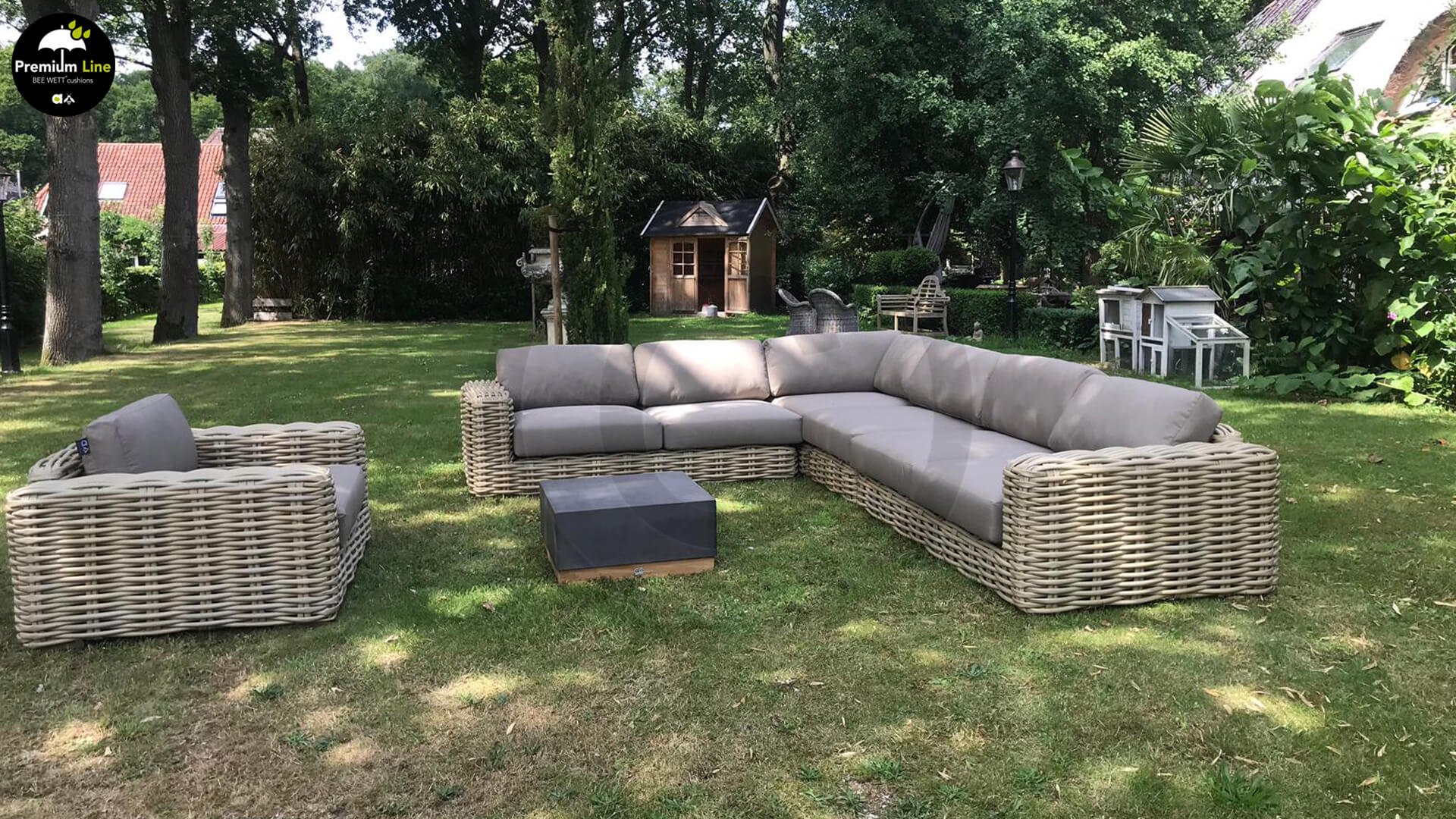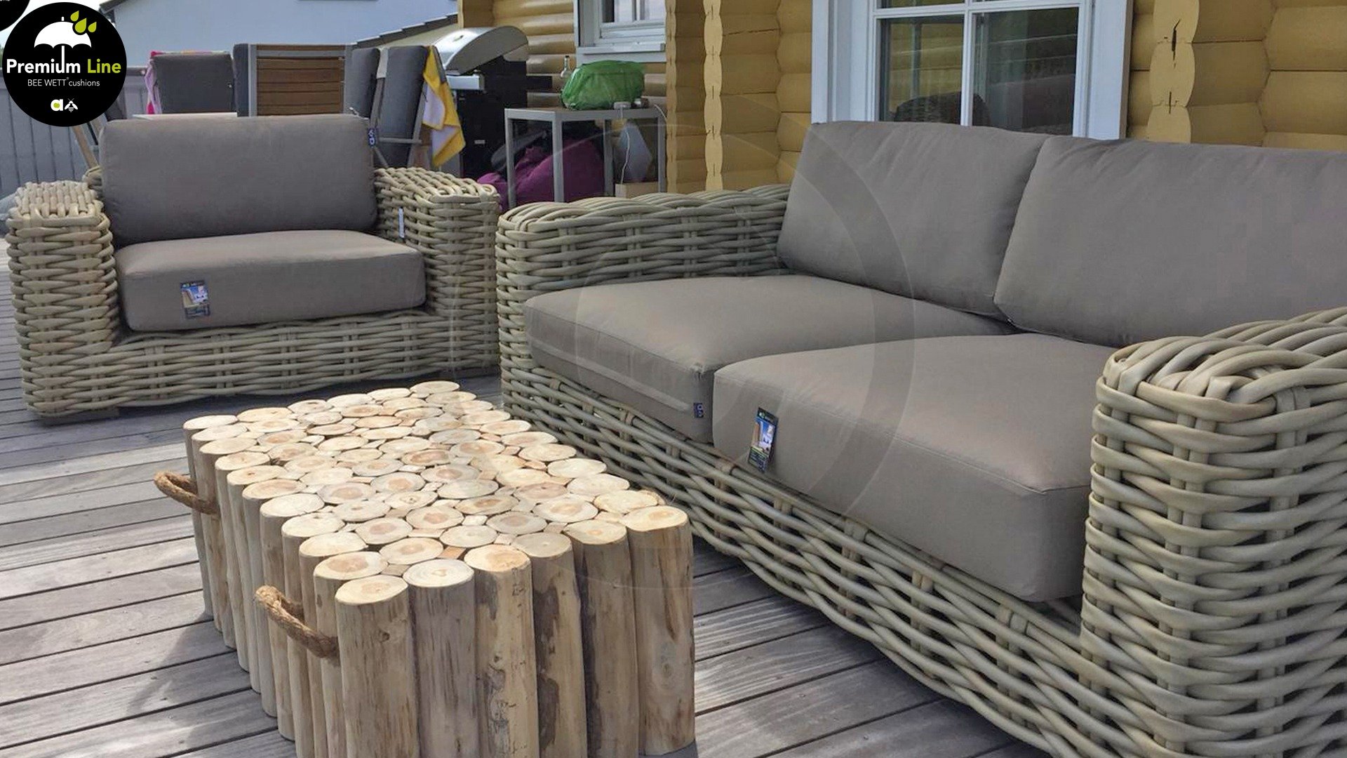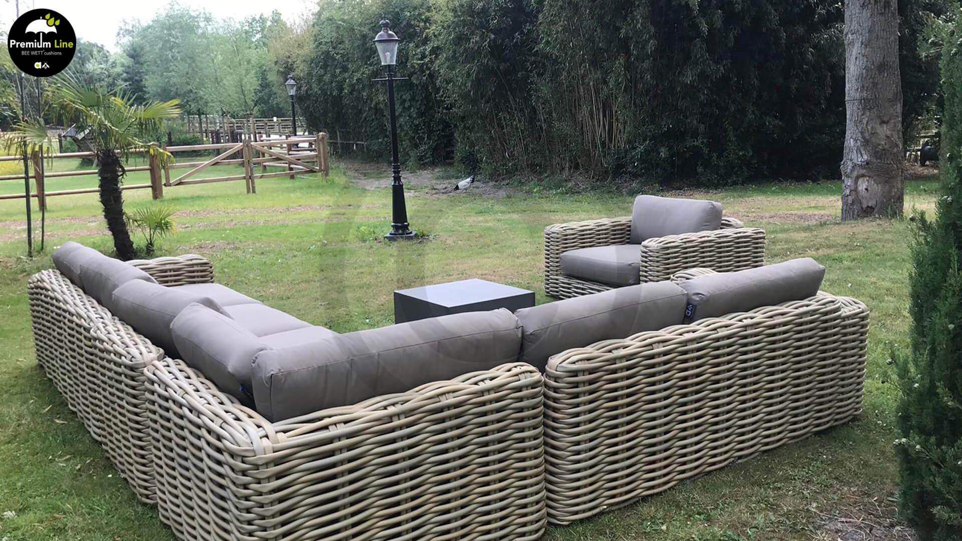 Dit geeft een totaal nieuwe, hippe en stoere look waardoor vlechtwerk alles behalve oubollig is. Eerder tijdloos! Extra dikke kussens in een luxe, fluffy uitvoering maken de set af. Bij de premium line zijn de kussens voorzien van Bee Wett® technologie, wat ervoor zorgt dat de kussens weer snel droog zijn na een fikse regenbui. Je kunt de kussens dus gewoon buiten laten liggen. De drainage aan de onderzijde van het kussen zorgt er namelijk voor dat het water de kussens eenvoudig kan verlaten. In het royale formaat kun je verdwijnen in luxe en comfort. De Apple bee FFF loungeset is daarmee uitermate geschikt om écht te loungen.