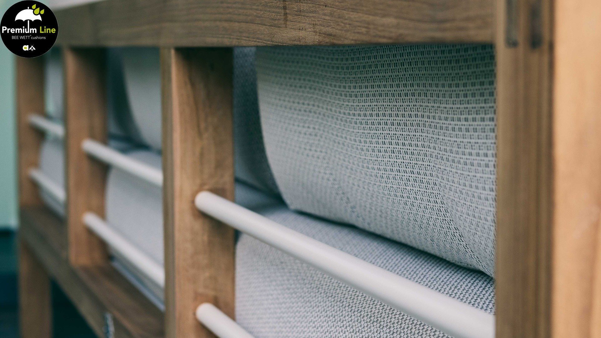 De AppleBee BEE WETT kussens zijn speciale weerbestendige kussens. De afneembare hoes is wasbaar maximaal 30º. Het open weefsel aan de onderzijde van het kussen zorgt voor een perfecte drainage. Dit zorgt ervoor dat uw BEE WETT kussen spectaculair veel sneller droogt dan andere kussens. Daarnaast is de stof bestand tegen rot en schimmels, UV-bestendig, vochtwerend, zacht en comfortabel. De hoes is uitritsbaar en wasbaar.