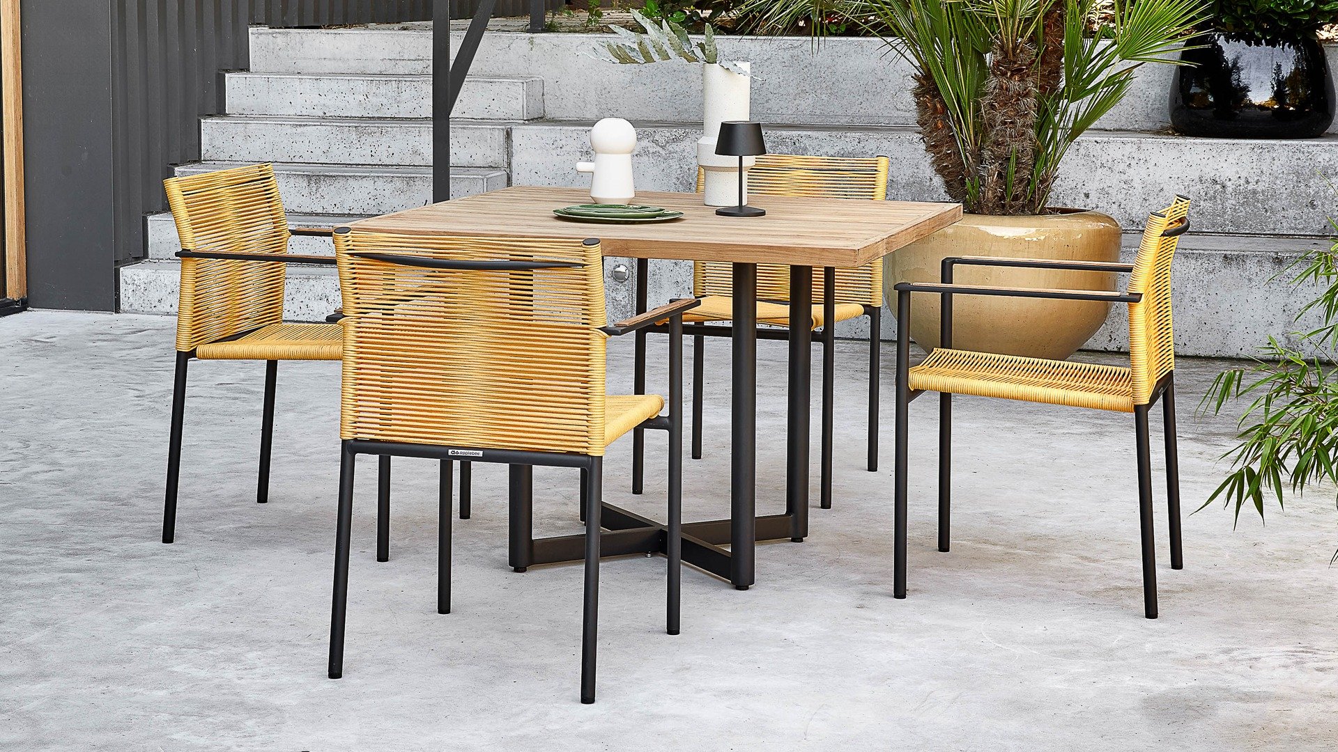 De AppleBee Jakarta dining stoel is gemaakt van hoogwaardig rope. Speciaal ontwikkeld voor het buitenleven, en zeer comfortabel zelfs zonder zitkussen. Verkrijgbaar in 4 verschillende kleur: Lemon, Black, Grey en Olive. Daarnaast is de Applebee Jakarta Dining stoel ook stapelbaar! Wat het praktisch maakt.