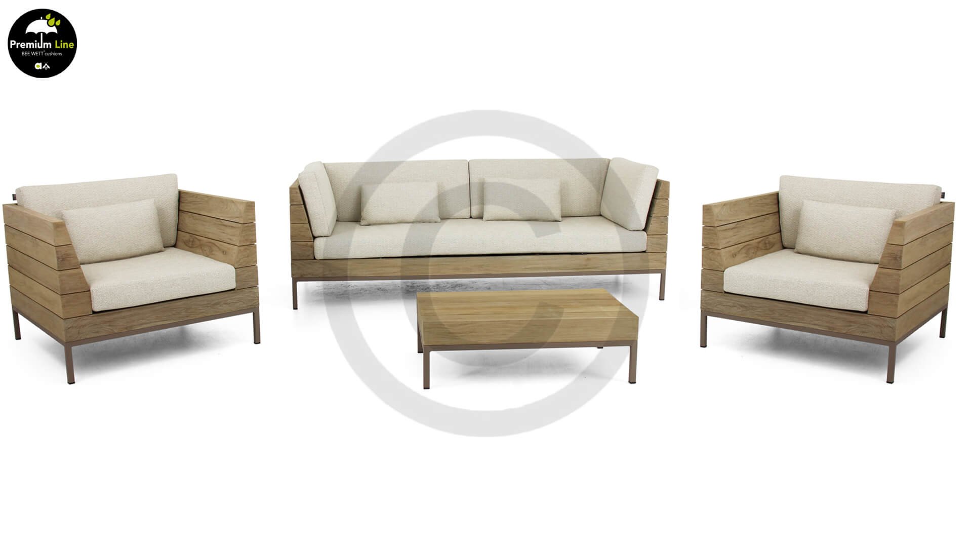 De Long Island lounge set is modulair en geschikt om grote en kleine opstellingen mee te maken. Het teakhout is bewerkt met een Coastal kleur finish. De strakke lijnen zijn kenmerkend voor het uiterlijk van deze mooie set. De grof geweven stof geeft de set een luxe uitstraling en brengt een beachy sfeer in jouw tuin!