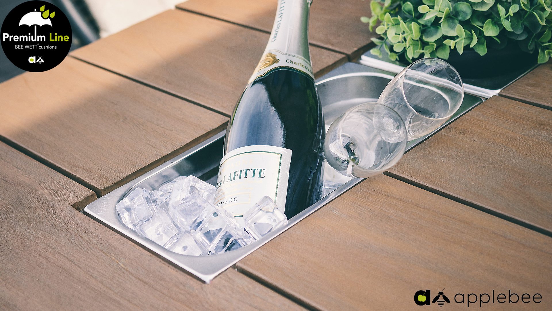 De Milou bartafel komt met een teakhouten blad, tezamen met een gepoedercoat onderstel in de kleur zwart. Daarbij bevat deze bartafel ook een wijkoeler die is inbegrepen, om uw drankjes lekker koud te houden op warme dagen!