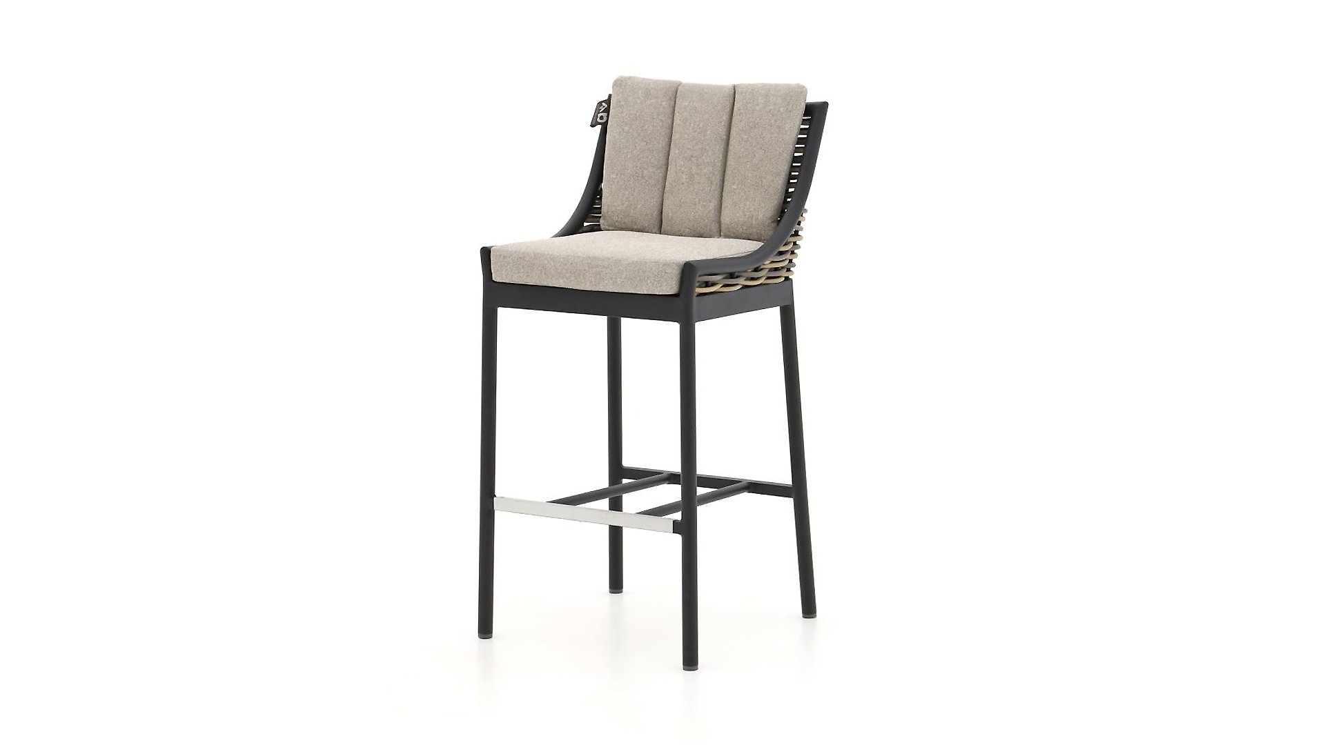 De Milou barset is van het merk AppleBee. De tuinstoel heeft een moderne uitstraling doordat er gebruik is gemaakt is van Willow vlechtwerk. De AppleBee Milou barstoel heeft een sterk frame dat gepoedercoat is in de kleur zwart. Het frame is met vlechtwerk afgewerkt in de kleur Willow. Het vlechtwerk is van all weather materiaal gemaakt en kan dus het gehele jaar buiten blijven staan.