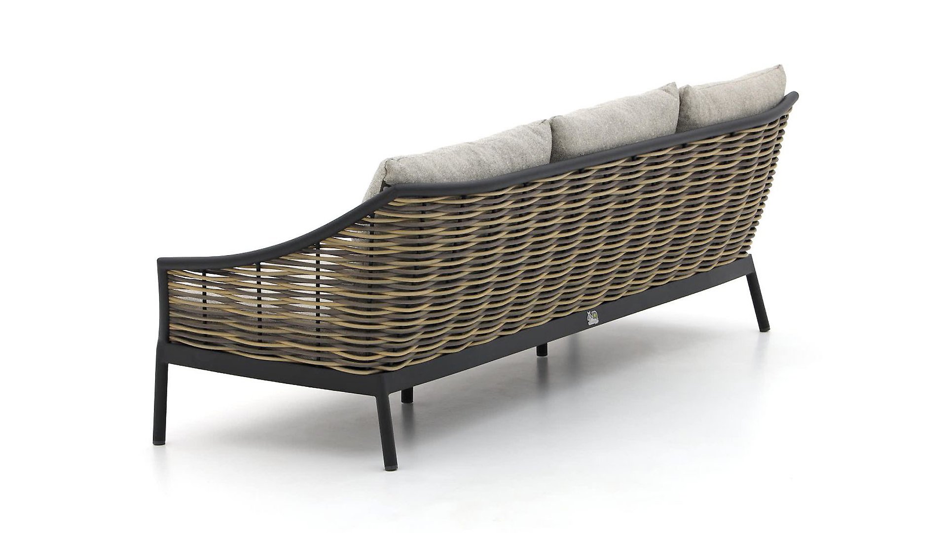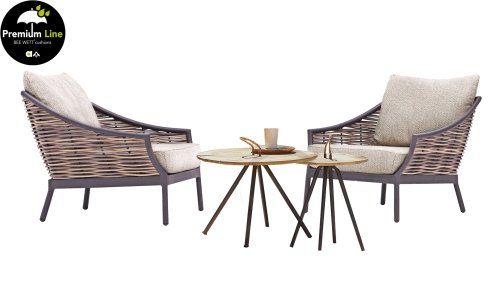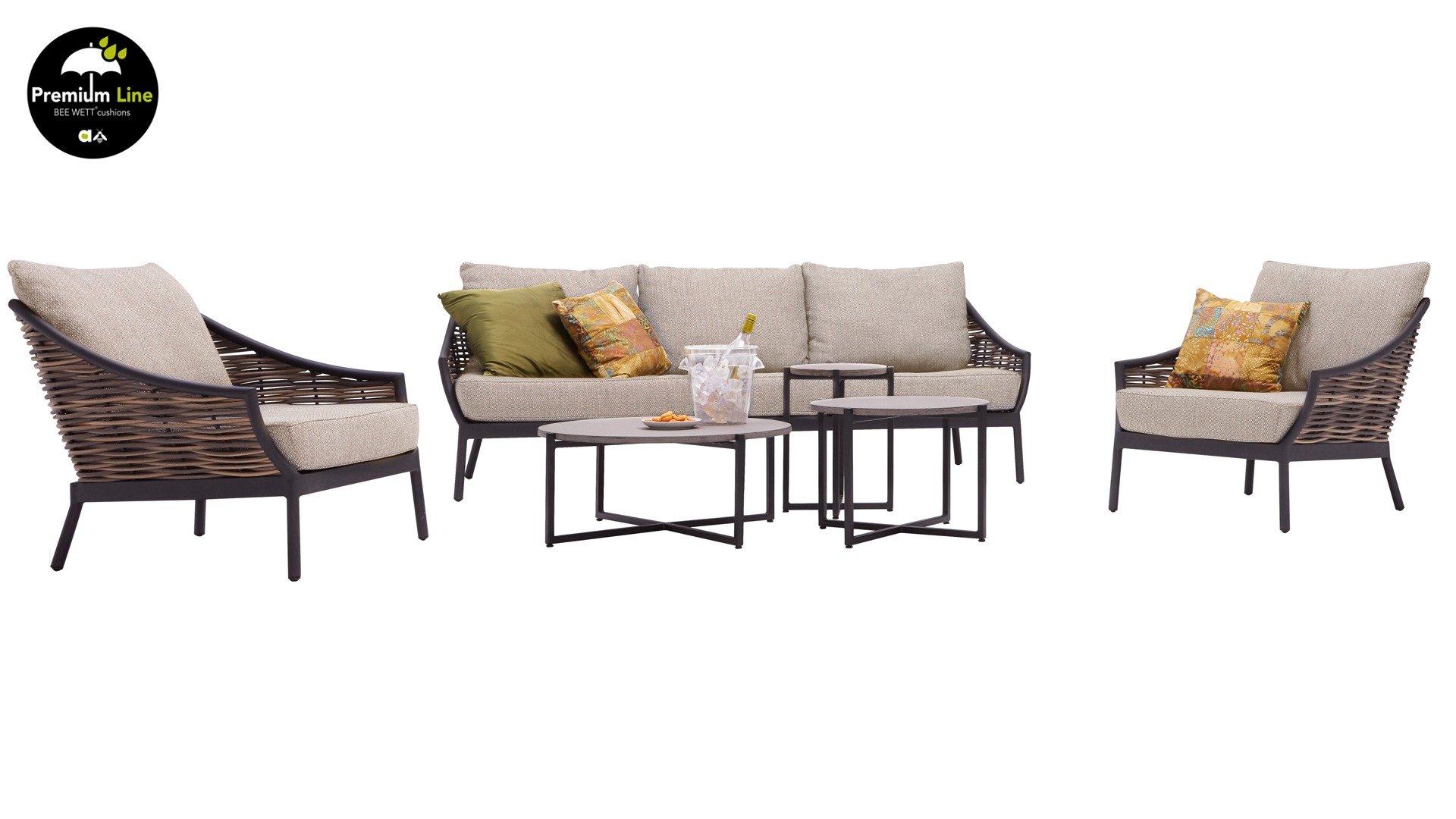 Door het vriendelijke formaat is Applebee Milou Black ook geschikt voor een balkon of kleiner terras. Met Milou is er weer een typisch origineel Apple Bee designmeubel in de collectie bijgekomen! Bij de premium line zijn de kussens voorzien van Bee Wett® technologie, wat ervoor zorgt dat de kussens weer snel droog zijn na een fikse regenbui. U kunt de kussens dus gewoon buiten laten liggen. De drainage aan de onderzijde van het kussen zorgt er namelijk voor dat het water de kussens eenvoudig kan verlaten. In het royale formaat kunt u verdwijnen in luxe en comfort. De Apple bee Milou loungeset zwart is daarmee uitermate geschikt om écht te loungen.Het extreem dikke vlechtdraad vergt een bijzondere vlechttechniek, die alleen de beste vlechters beheersen. Deze ambachtslieden vlechten iedere draad één voor één handmatig in. Je haalt met AppleBee Milou Loungeset Black dus een echt staaltje ambachtskunst in huis.