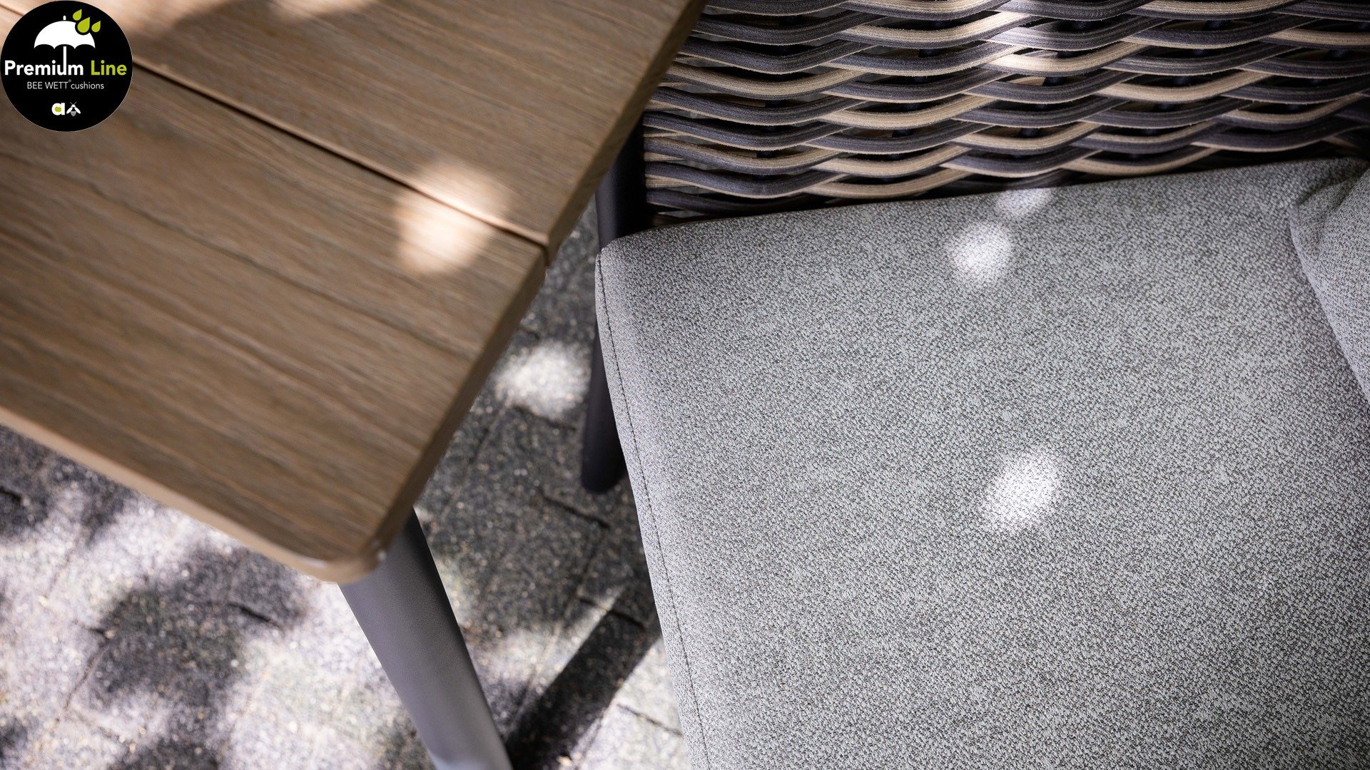 Het aluminium frame is met een stevige poedercoating gelakt en is weerbestendig en bestand tegen UV-straling. Aluminium is niet aan roest onderhevig, is tijdloos en stijlvol.