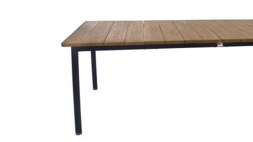 De Applebee Milou tafel bestaat uit gecertificeerd teakhout met een gepoedercoat aluminium frame. De tafel is dus zeer geschikt voor het buitenleven. De eettafel van deze serie is verkrijgbaar in 5 uitvoeringen, waaronder: Applebee Milou tafel Teak/Alu Black 180cm, Applebee Milou tafel Teak/Alu Black 240cm, Applebee Milou tafel LWC/Alu Black 240cm, Applebee Milou tafel Teak/Alu White 180cm & Applebee Milou tafel Teak/Alu White 240cm. Zo is er altijd wel een Applebee Milou die bij uw terras past! Wilt u liever een Taupe kleurig frame, dan kiest u voor de Bijou tafelserie die ook nog in 4 uitvoeringen verkrijgbaar is.