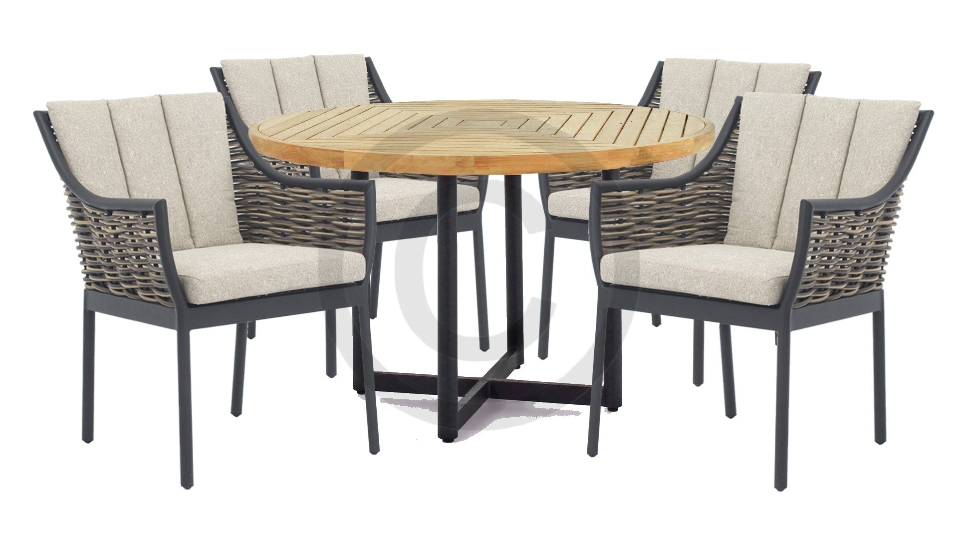 1 x Applebee Jakarta tafel Teak/Alu Black Ø 120cm