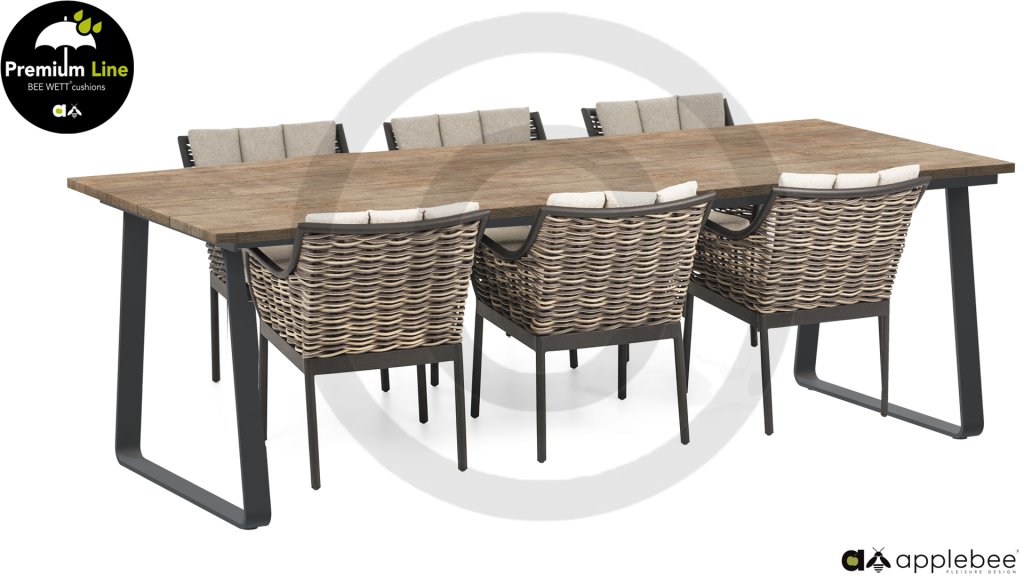 Het hout dat door AppleBee gebruikt wordt is FSC® en SVLK® gecertificeerd! Teakhouten tuinmeubelen zorgen voor een prachtige uitstraling. Bovendien is het sterk materiaal en vraagt het weinig onderhoud. Als u uw teakmeubelen buiten laat staan, krijgt het in de loop der jaren een ander uiterlijk. U kunt uw teakhouten tuinmeubelen prima onderhouden met de artikelen uit ons teak onderhoudsmiddelen programma. Daarnaast kunt u teak met groene zeep reinigen. Onregelmatigheden zijn kenmerkend voor het product. Dit soort onregelmatigheden kan daarom ook nooit aanleiding vormen voor reclamatie, garantie of claim. Het betreft een handtekening van originaliteit.