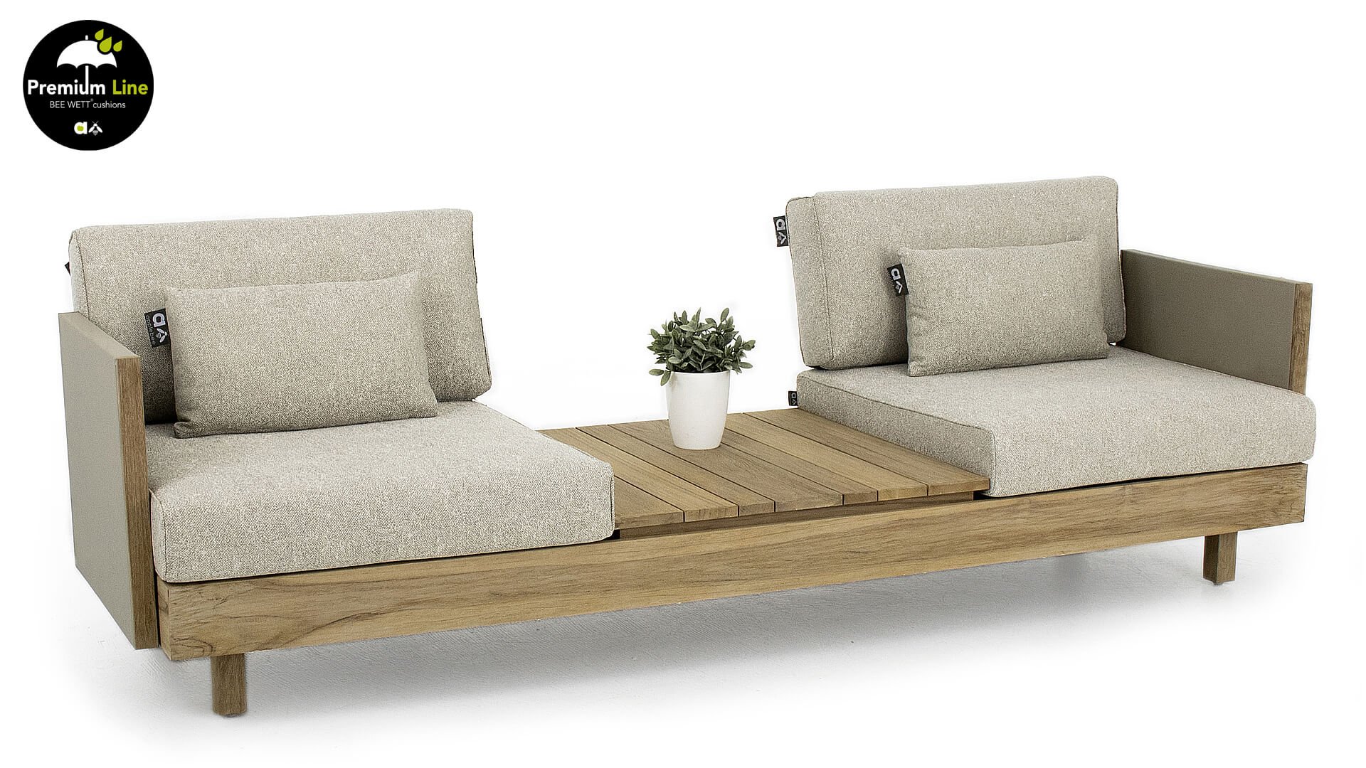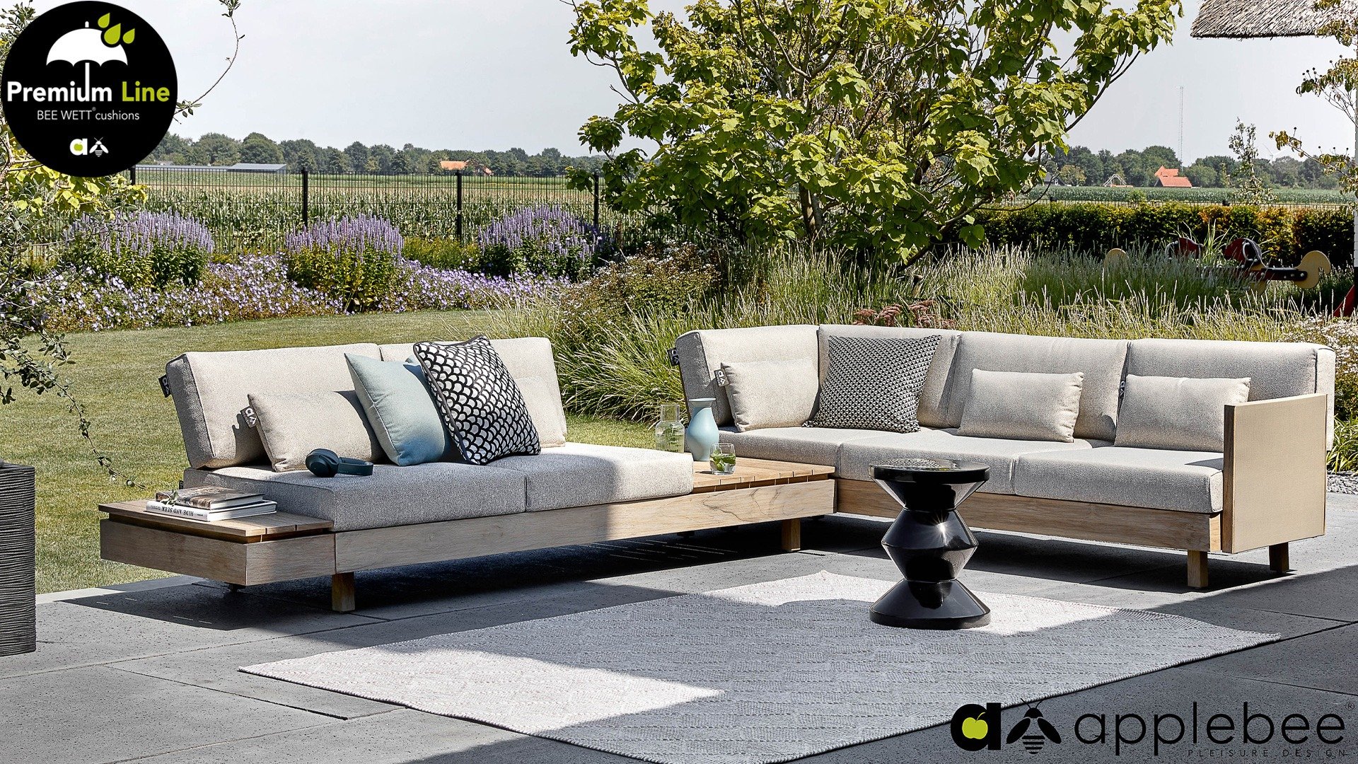 Applebee Module-X Loungeset Coastal: Flexibiliteit zonder grenzen. Met de Applebee Module-X kunt u eindeloos variëren in de opstelling en meubelen. Alle losse onderdelen vormen samen het loungemeubel, waarmee u uw eigen tuin designed! En volgende week creëert u weer wat anders. Het hout dat gebruikt wordt is FSC® en SVLK® gecertificeerd. Natuurlijk met de bekende Nature Grey Beewett kussens van AppleBee voor heerlijk gebruiks gemak! Apple Bee meubelen worden opgebouwd uit de beste materialen. Dit geldt zeker voor de kussens. BEE WETT zijn speciale weerbestendige kussens. De afneembare hoes wordt gemaakt van de best mogelijke stoffen die alle wasbaar zijn.