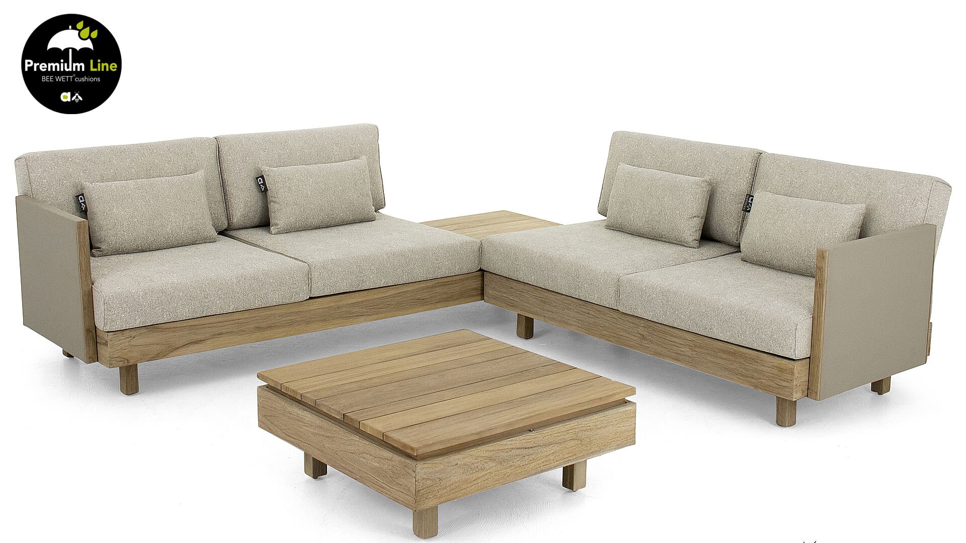De Applebee Module X loungeset is gemaakt van oersterk teakhout, wat is afgewerkt met een zogenaamde nieuwe coastal finish, wat een frisse look geeft aan uw meubel. De zit- en rugkussens in deze set zijn voorzien van onze BEE WETT® technologie, die zorgt voor een perfecte afvoer van vocht.