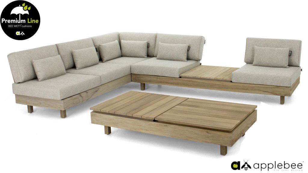 De Applebee Module X loungeset is gemaakt van oersterk teakhout, wat is afgewerkt met een zogenaamde nieuwe coastal finish, wat een frisse look geeft aan uw meubel. De zit- en rugkussens in deze set zijn voorzien van onze BEE WETT® technologie, die zorgt voor een perfecte afvoer van vocht.