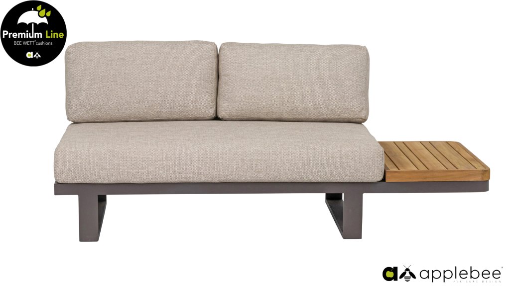 De gloednieuwe Applebee Mura Lounge is een ware lust voor het oog. Naast het eigenzinnige uiterlijk van deze lounge set, is het ook nog eens een functionele toevoeging in je tuin. De Mura Lounge is geheel naar eigen smaak op te stellen door de verschillende modules. Beide sofa’s zijn tweezitters, waarvan een hoekmodule en een bank met een teak tafel aan de zijkant