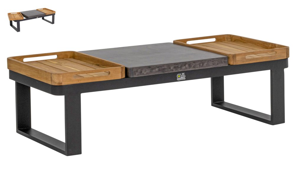 Niet alleen de modulaire opstelling van deze Applebee Mura loungeset is functioneel, maar ook de koffietafel is praktisch ontworpen. Met een lichtgewicht beton tafelblad in het midden wordt de salontafel afgemaakt met twee afneembare teak dienbladen aan de zijkanten. Super handig om bijvoorbeeld eten en drinken te serveren! Of je zet het dienblad met drinken op de bank voor stabiliteit, zodat je lekker in je positie kunt blijven zitten.
