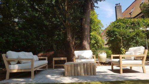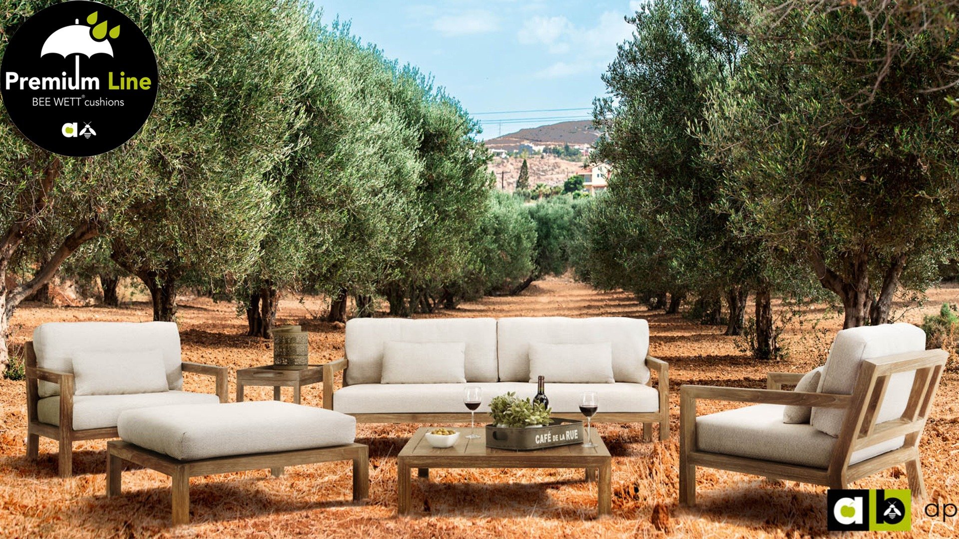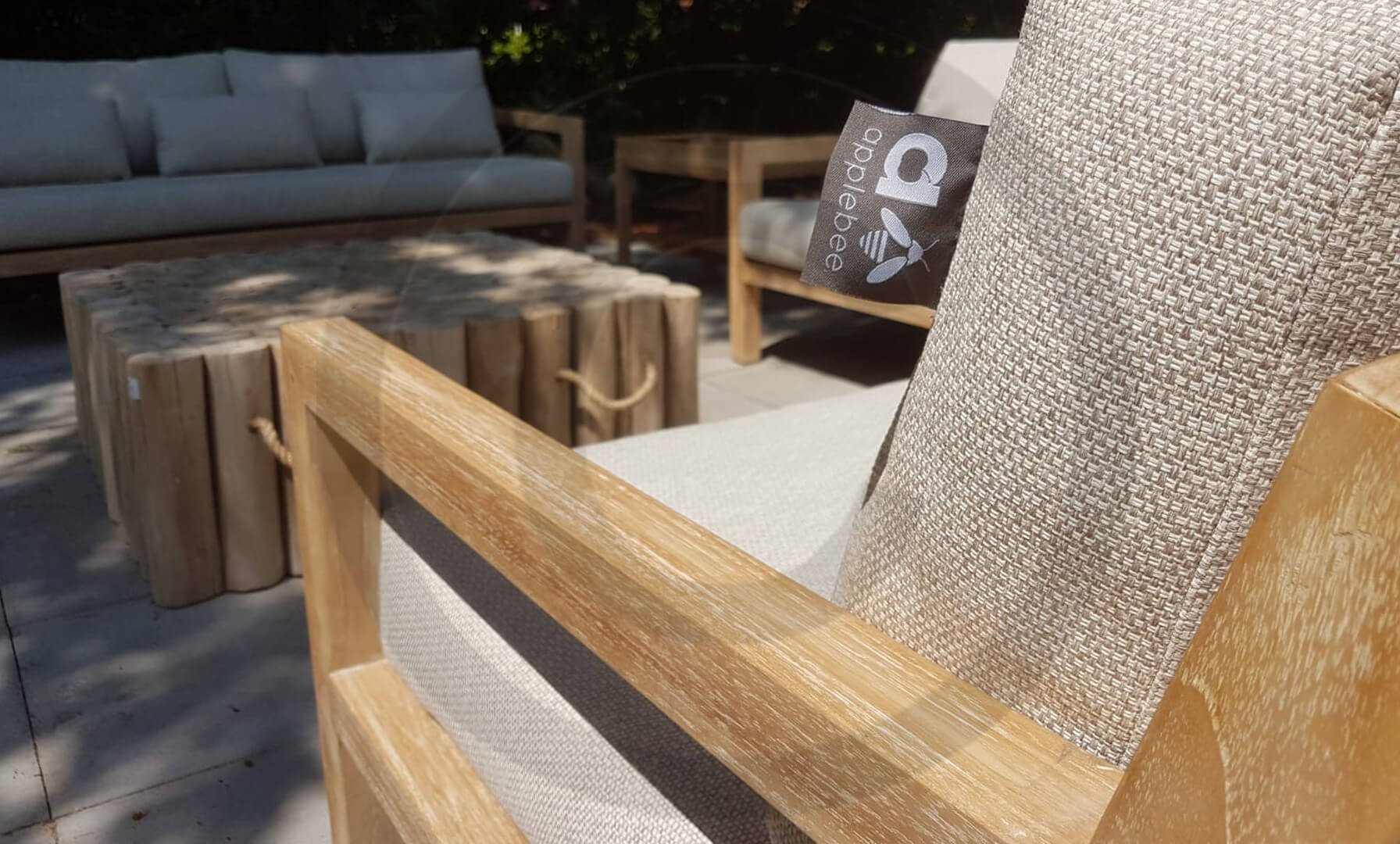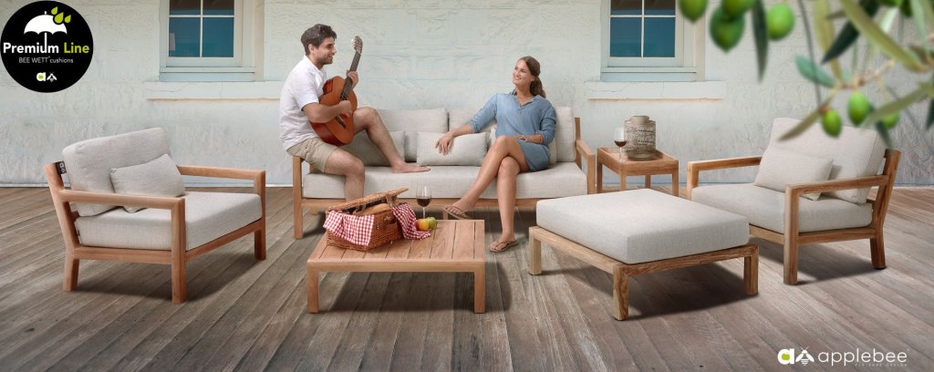 Het hout dat gebruikt wordt is FSC® en SVLK® gecertificeerd. Natuurlijk met de bekende Natural Oak Beewett kussens van AppleBee voor heerlijk gebruiks gemak! AppleBee meubelen worden opgebouwd uit de beste materialen. Dit geldt zeker voor de kussens. BEE WETT zijn speciale weerbestendige kussens. De afneembare hoes wordt gemaakt van de best mogelijke stoffen die alle wasbaar zijn.