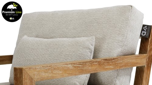 De Applebee Olive Loungeset: Robuuste teakhouten balken, samengesmolten tot een stoer en tijdloos loungemeubel. De Applebee Olive Loungeset blijft zéker niet onopgemerkt in uw tuin of op uw terras, in welke opstelling dan ook! Het wit zepen (white washen) van hout is ontstaan vanuit een oud fenomeen, waarbij hout werd bewerkt met kalk vanwege de ontsmettende werking. Tijdens het whitewash-proces dringt de kalk diep door in de nerven van het hout, wat een mooi gebleekt effect geeft. Dus bent u echt op zoek naar compleet iets anders? Bekijk dan zeker de Olive met de originele whitewash tint op het stevige teakhout. De bijpassende beige Bee Wett kussens geven de Olive in combinatie met het gebleekte teakhout, een zeer fraaie uitstraling.