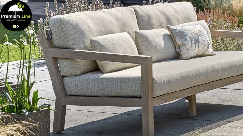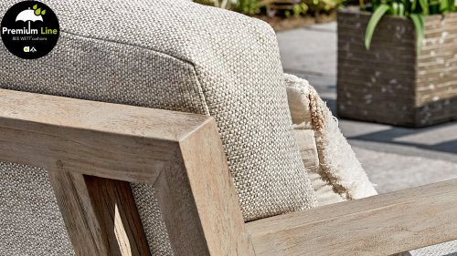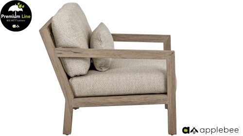 De Applebee Olive Loungeset: Robuuste teakhouten balken, samengesmolten tot een stoer en tijdloos loungemeubel. De Applebee Olive Loungeset blijft zéker niet onopgemerkt in uw tuin of op uw terras, in welke opstelling dan ook! Dus bent u echt op zoek naar compleet iets anders? Bekijk dan zeker de Olive met de originele Coastal tint op het stevige teakhout. De bijpassende Natural Oak kleur Bee Wett kussens geven de Olive in combinatie met het gebleekte teakhout, een zeer fraaie uitstraling.