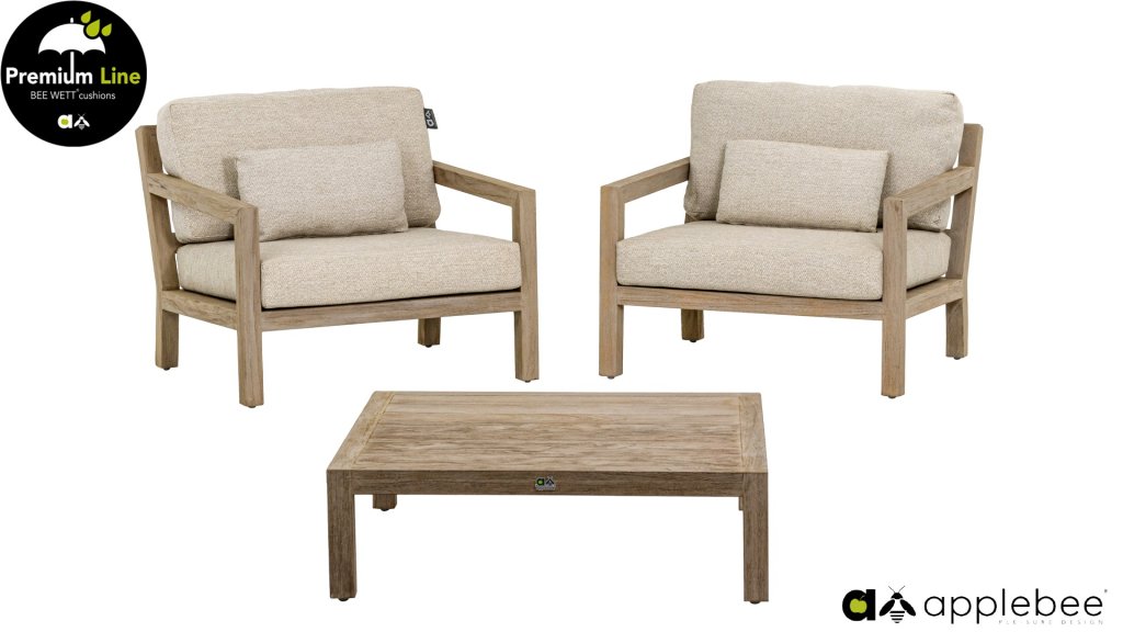 Applebee Olive Lounge heeft strakke hoekige lijnen die schuin af lopen. Schuif de voetenbank aan bij de lounge stoel en geniet van het comfort dat deze teakhout set je te bieden heeft. Op onze zachte en weerbestendige Bee Wett® kussens, weet je in ieder geval zeker dat je lekker zit!