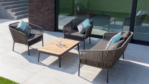 Zelf samenstellenCastle Line is het tuinmeubelmerk dat innoveert. Dat blijkt ook uit de Clavo loungeset. Deze is namelijk gemaakt van synthetisch touw (Rope) Het Rope is vervolgens gevlochten door en om een aluminium frame. Het Rope van de Castle Line Clavo zorgt voor een open structuur en zorgt daarmee voor ruimtelijkheid en een echte " vintage look " . Het Castle Line Clavo loungeset biedt plaats voor 4 tot 5 personen.